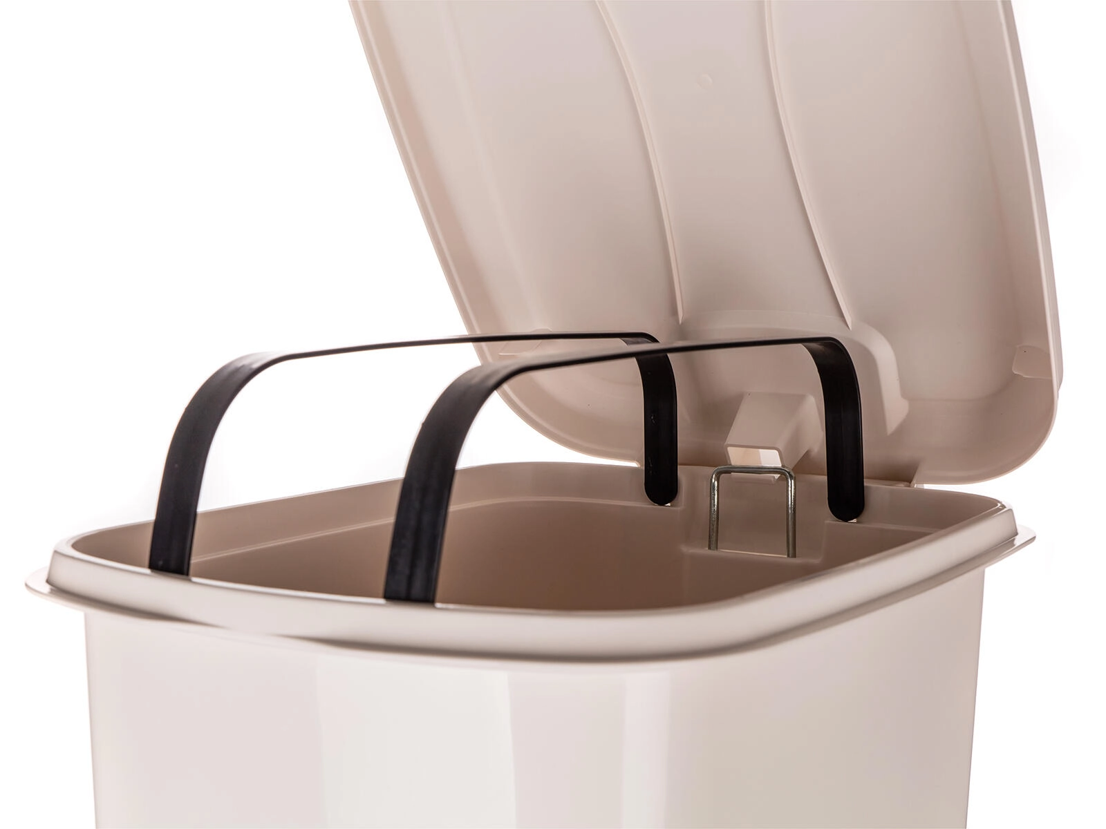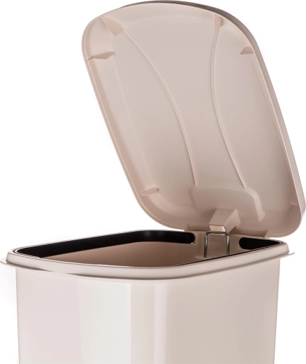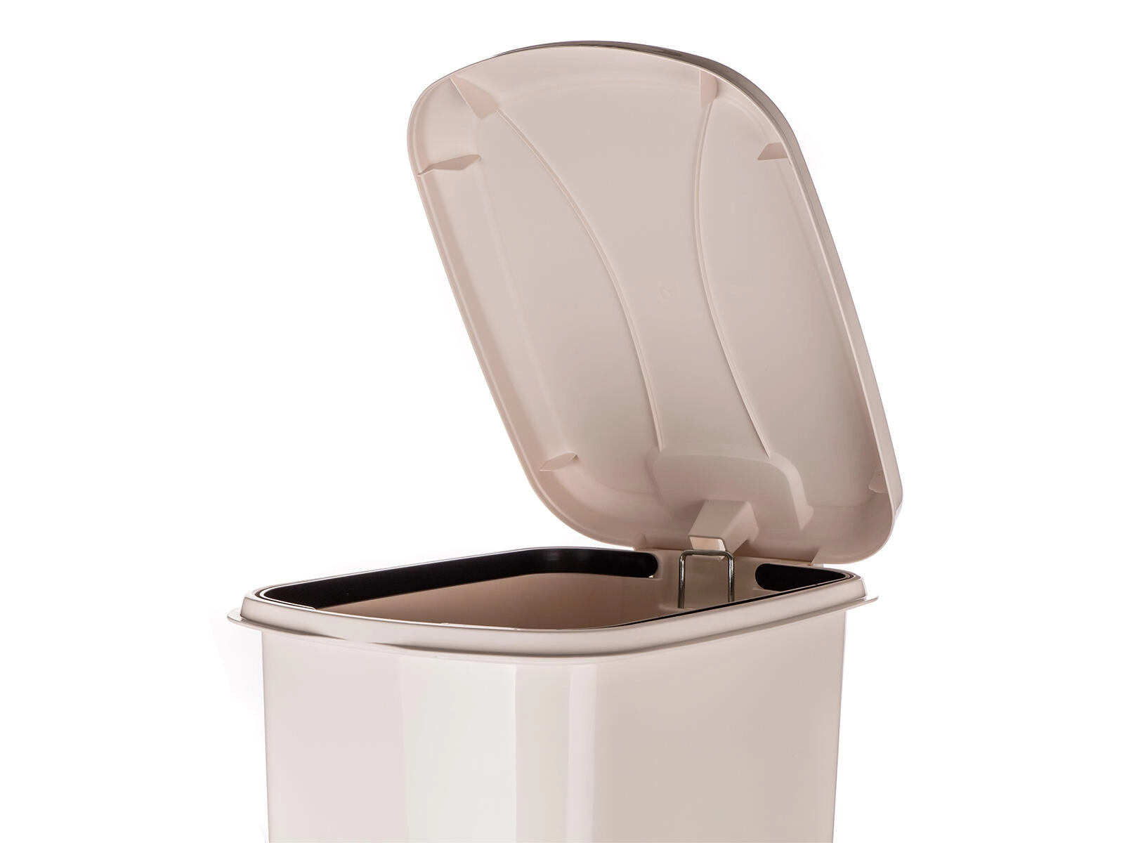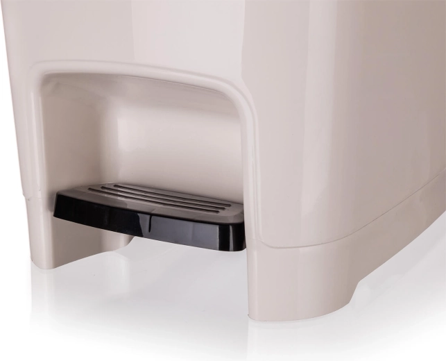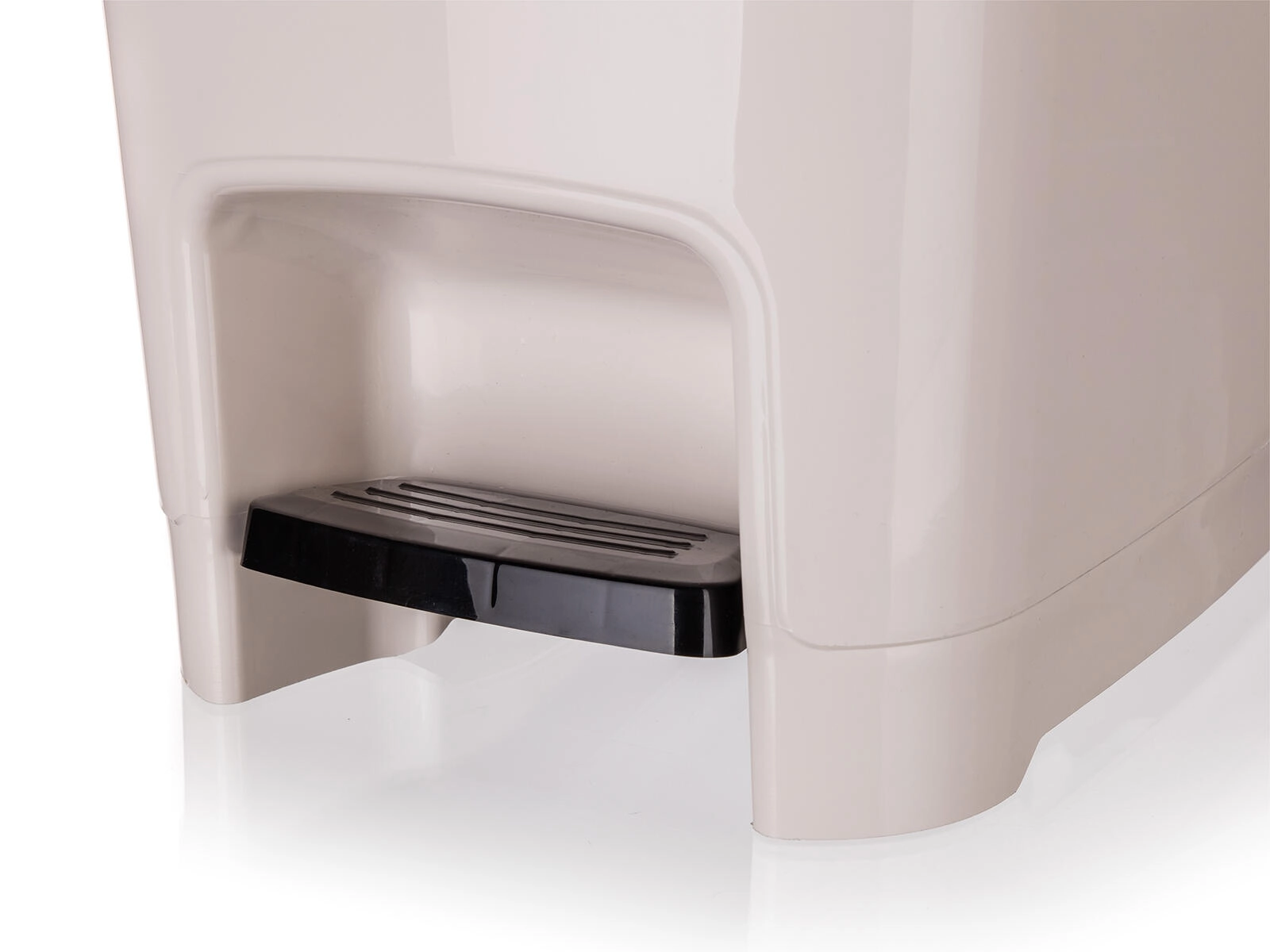 Krémový nášlapný koš STEP o objemu 25 litrů je ideální volbou pro každý moderní interiér. Robustní plastové provedení zajišťuje dlouhou životnost, zatímco pedálový mechanismus umožňuje otevření víka bez použití rukou – maximálně hygienické a komfortní řešení pro každodenní provoz.