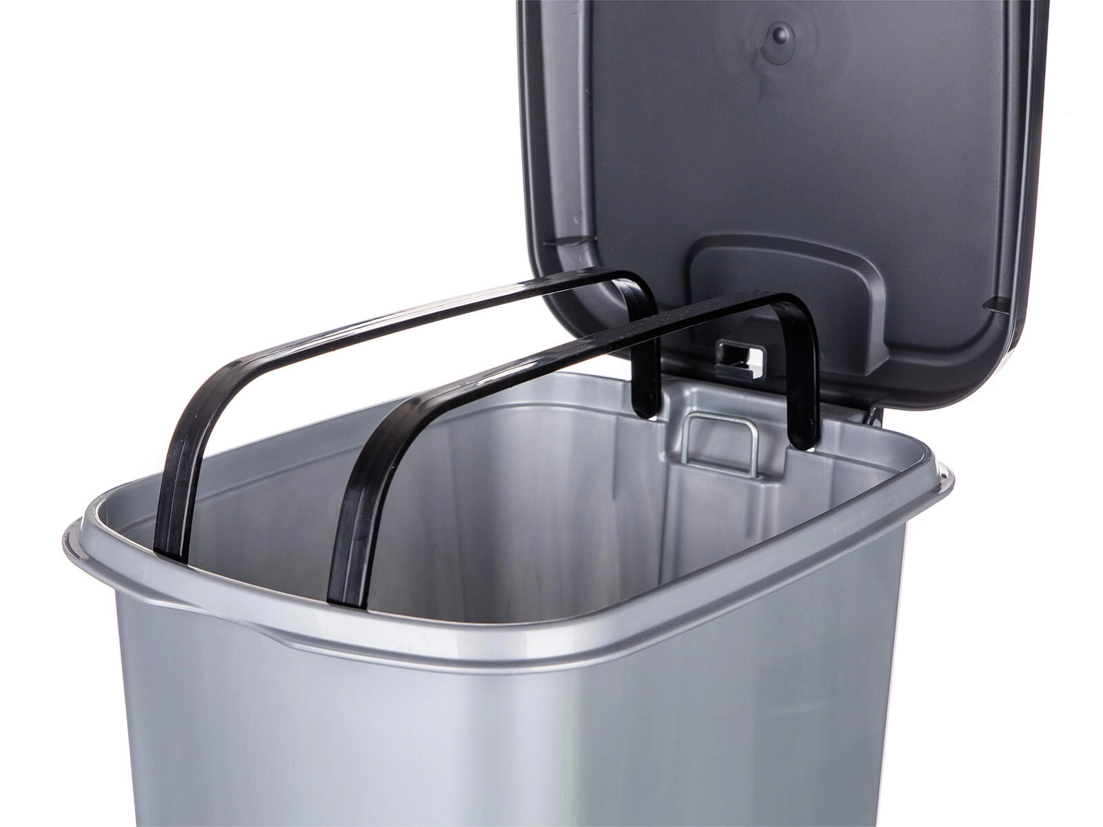 Nášlapný pedál umožňuje otevřít víko bez použití rukou – ideální pro kuchyně a sdílené prostory, kde je důležitá čistota a pohodlí.