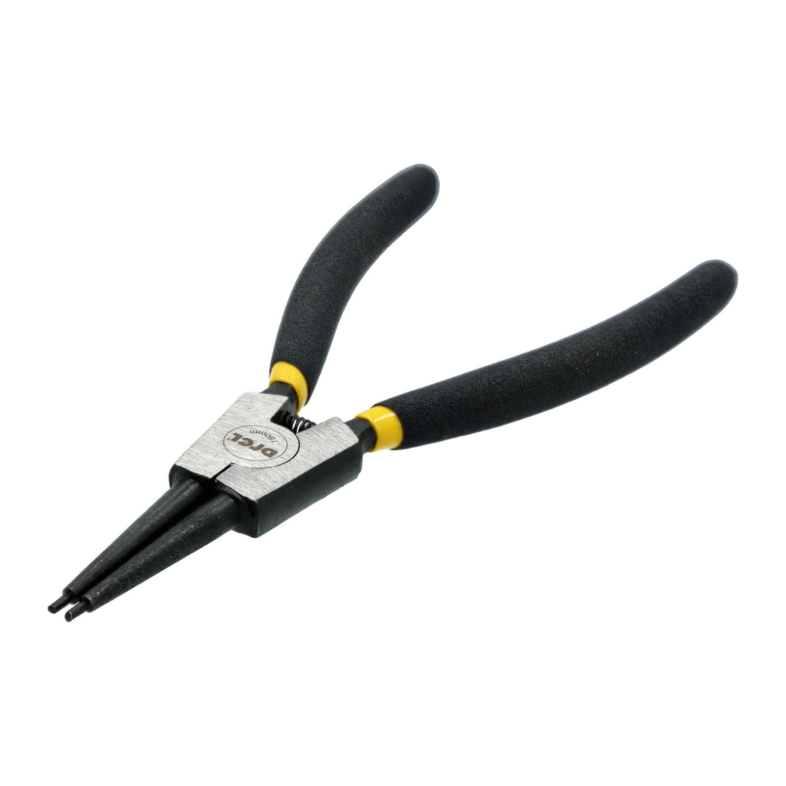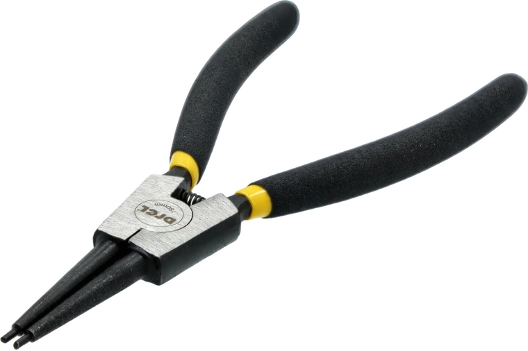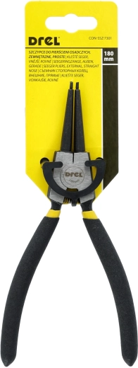 Profesionální kleště na vnější pojistné kroužky DREL o délce 180 mm pro rychlou a přesnou práci na hřídelích a osách. Nabízejí jemné dlouhé čelisti pro bezpečné uchopení kroužků, pružinový mechanizmus pro pohodlné rozevírání a ergonomické protiskluzové rukojeti pro jistý úchop i při delší práci.