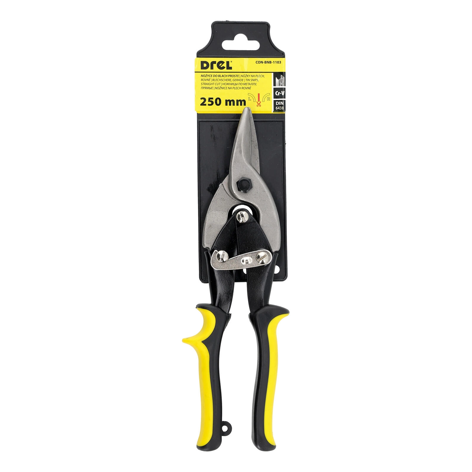 Hledáte spolehlivé nůžky na plech pro dílnu i domácí projekty? Model DREL 250 mm poskytuje stabilní, rovný střih díky pevným čelistem z chromvanadiové oceli. Ergonomické rukojeti s plastovou ochranou zajišťují jistý úchop i při delší práci, zatímco převodový mechanismus minimalizuje vynaloženou sílu.