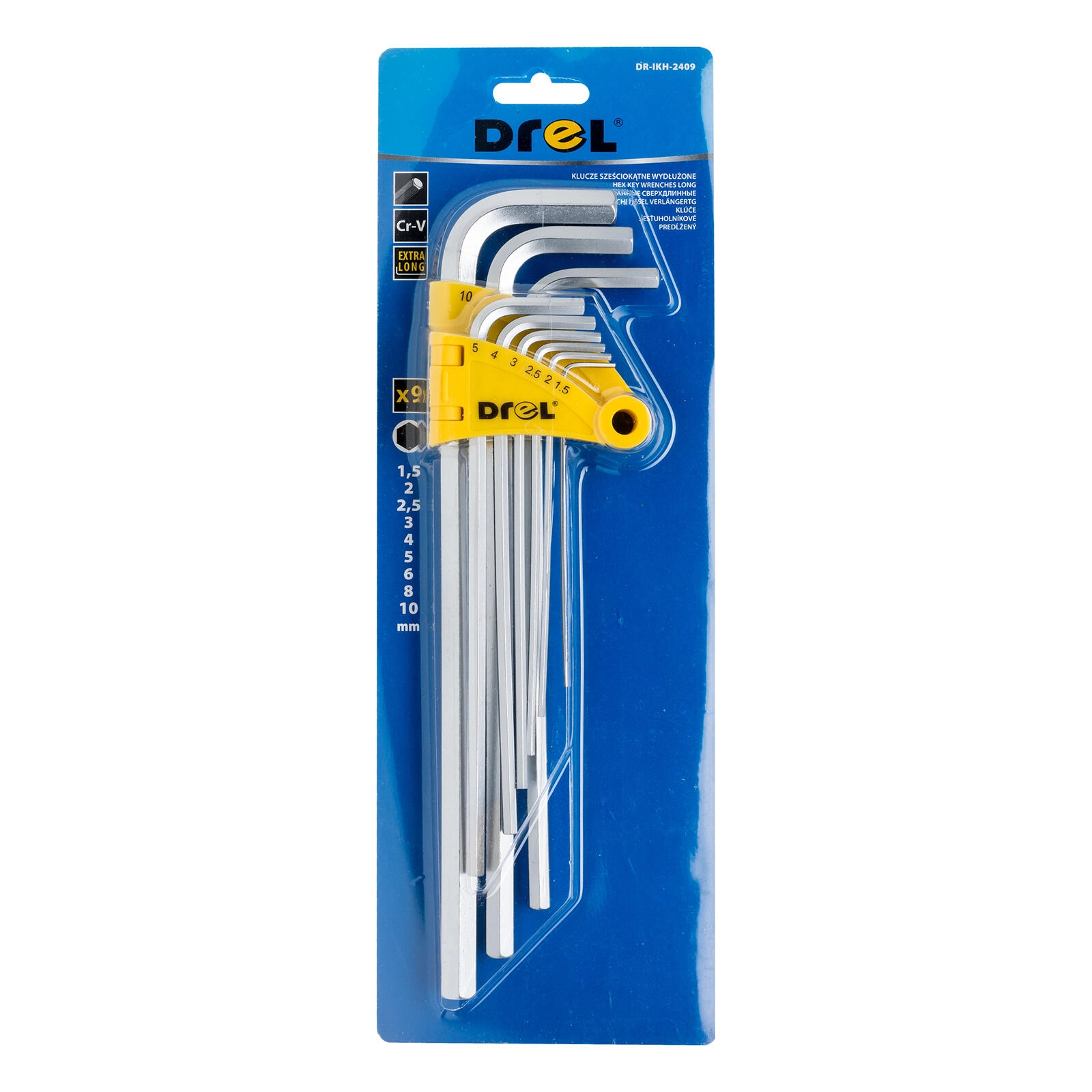 S touto kompletní sadou devíti prodloužených imbusových klíčů DREL budete připraveni na jemné montáže i náročnější opravy. Kvalitní chrom-vanadová (CrV) ocel zaručuje dlouhou životnost a odolnost proti opotřebení, zatímco kuličkové zakončení na delém rameni umožňuje práci i v hůře přístupných místech.