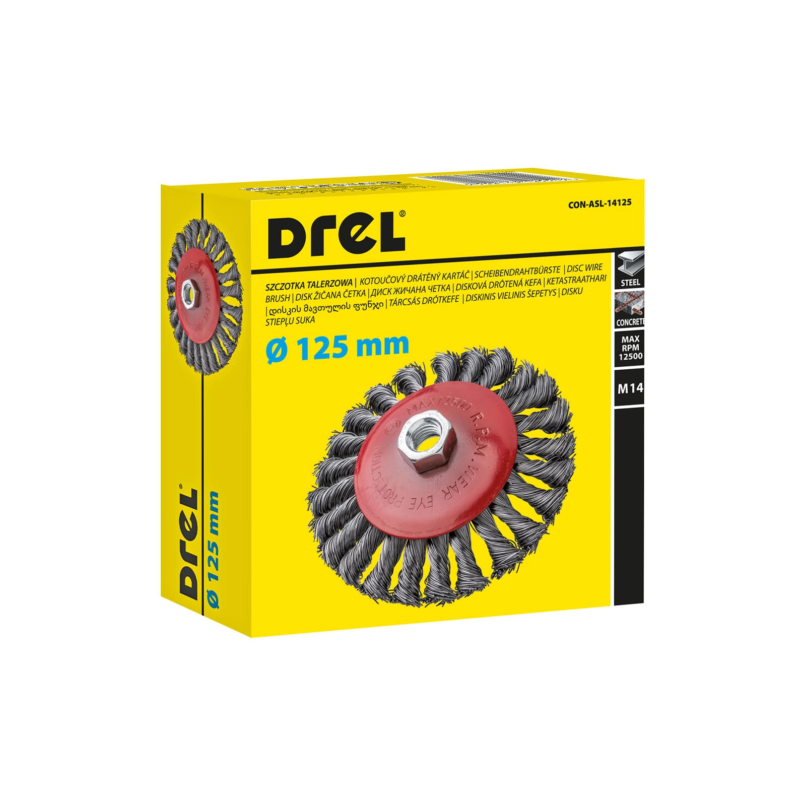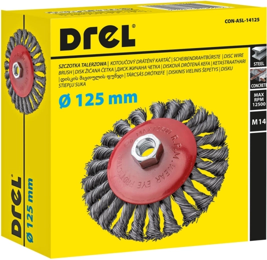 Miskový ocelový kartáč o průměru 125 mm je ideální pro náročné čištění kovových povrchů. Robustní kroucené dráty zajišťují vysoký úběr materiálu a odolnost při každodenním použití. Standardní závit M14 zaručuje kompatibilitu s většinou úhlových brusek.