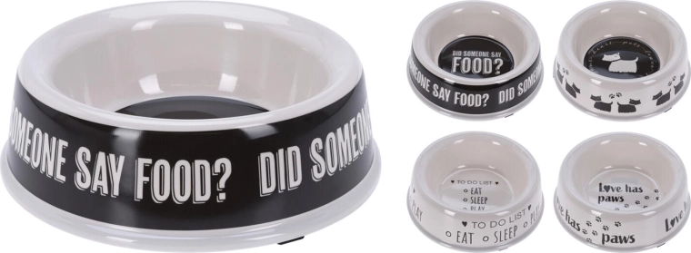 Praktická a hygienická miska pro domácí mazlíčky z odolného melaminu s průměrem 25 cm. Díky protiskluzovým pryžovým nožkám zůstává stabilní i při nadšeném krmení. Snadno se čistí, je lehká a nabízí mix stylových dekorů pro sladění s interiérem.