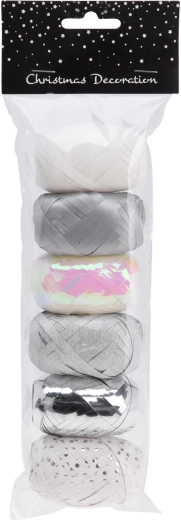 Elegantní vázací stuha o délce 8 m v kombinaci bílé a stříbrné barvy dodá vašim dárkům a dekoracím luxusní vzhled. Ideální pro balení dárků, tvorbu mašlí i kreativní zdobení, výhodné balení 6 ks pro domácí i profesionální použití.