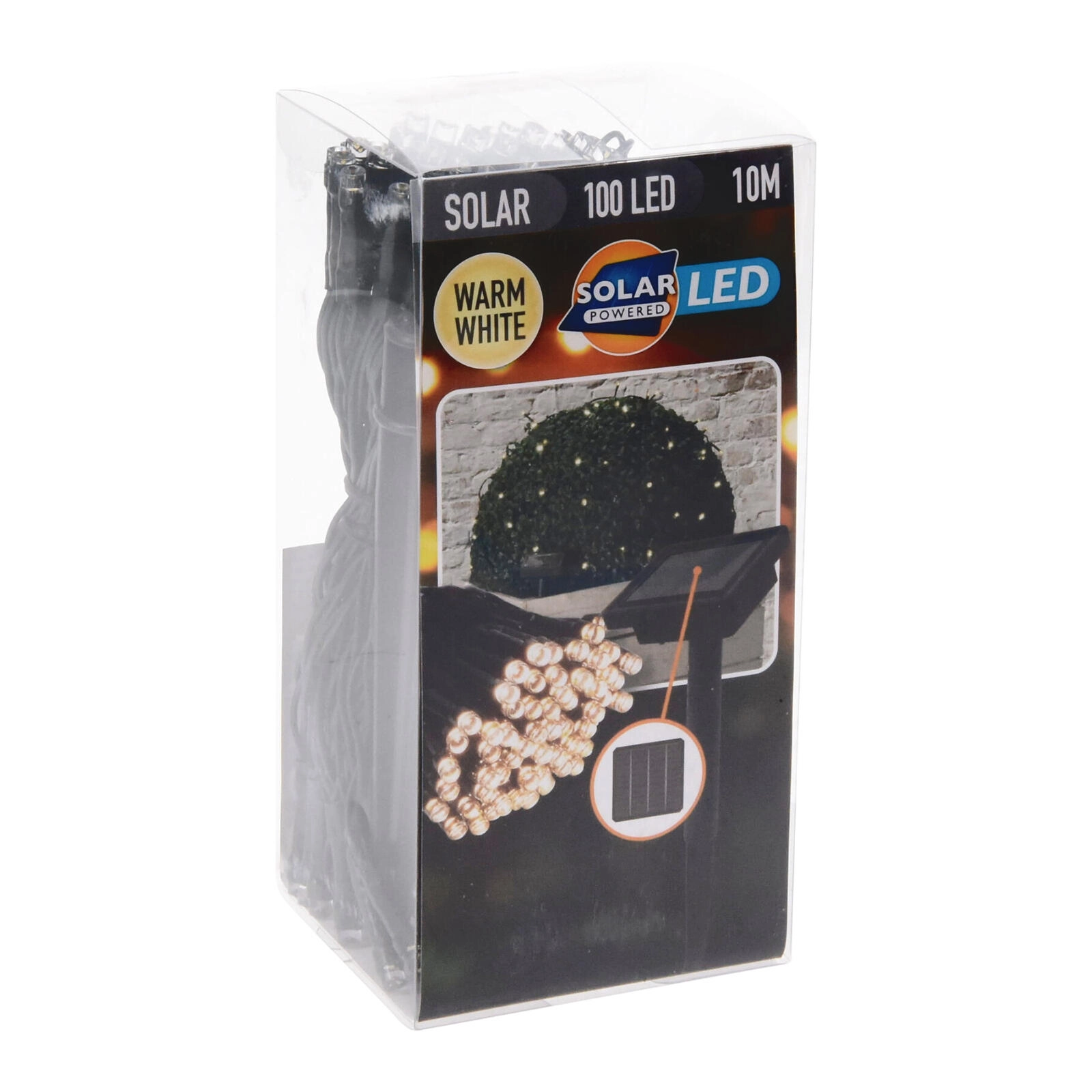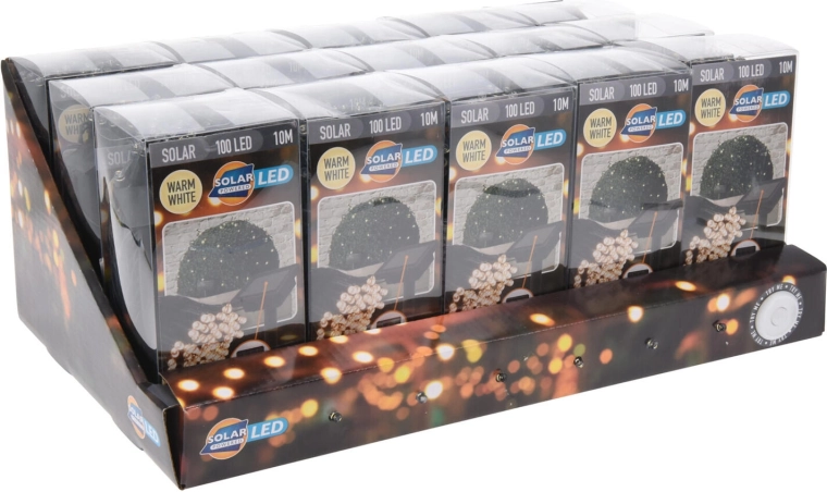 Tento kompaktní solární světelný řetěz je perfektní volbou pro vánoční i celoroční dekorace. Na 2 metrech délky je rozmístěno 100 LED s příjemným teple bílým světlem a světelným výkonem 35 lm, který navodí útulnou atmosféru bez oslnění. Zelený drát nenápadně splyne s větvemi stromků a keřů.