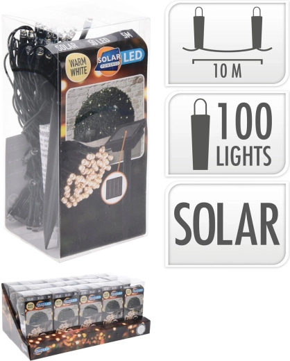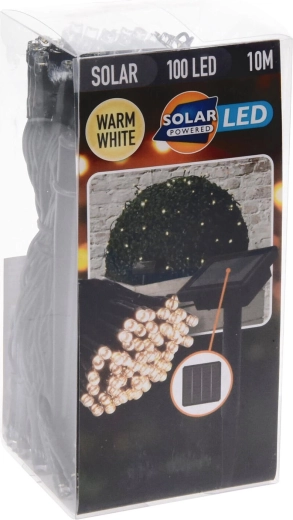 Solární vánoční LED řetěz 2 m, 100 LED, teplá bílá, zelený drát