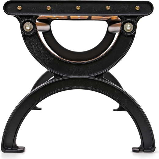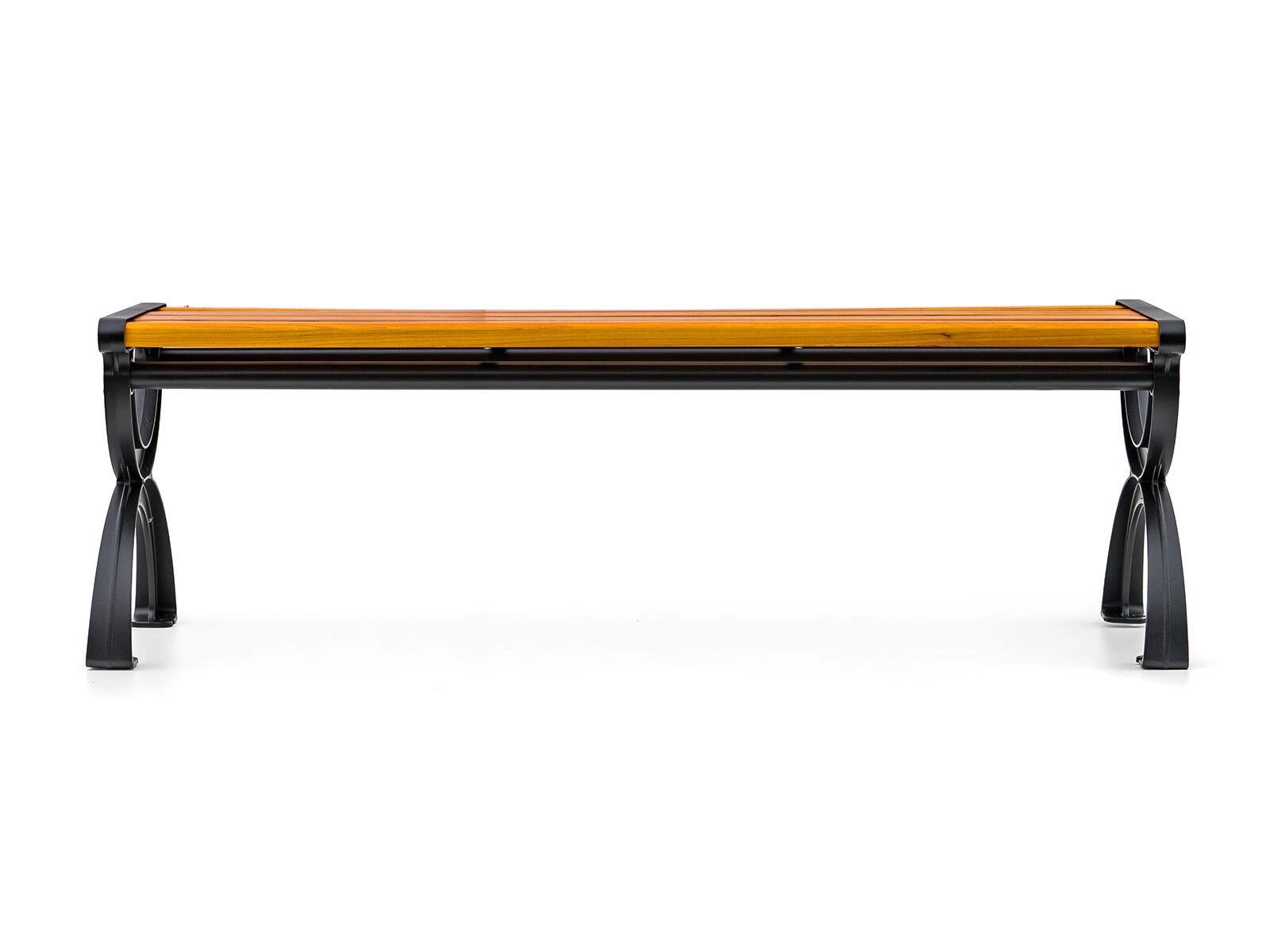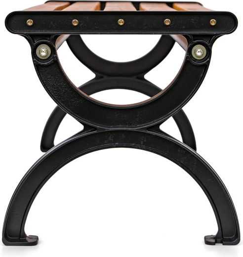 Praktický rozměr 120 cm poskytne pohodlné místo pro více osob, zatímco stabilní černý rám s jemně zaoblenými liniemi garantuje pevnou oporu. Díky nenáročné údržbě stačí lavičku občas otřít a je připravena k dalšímu používání.