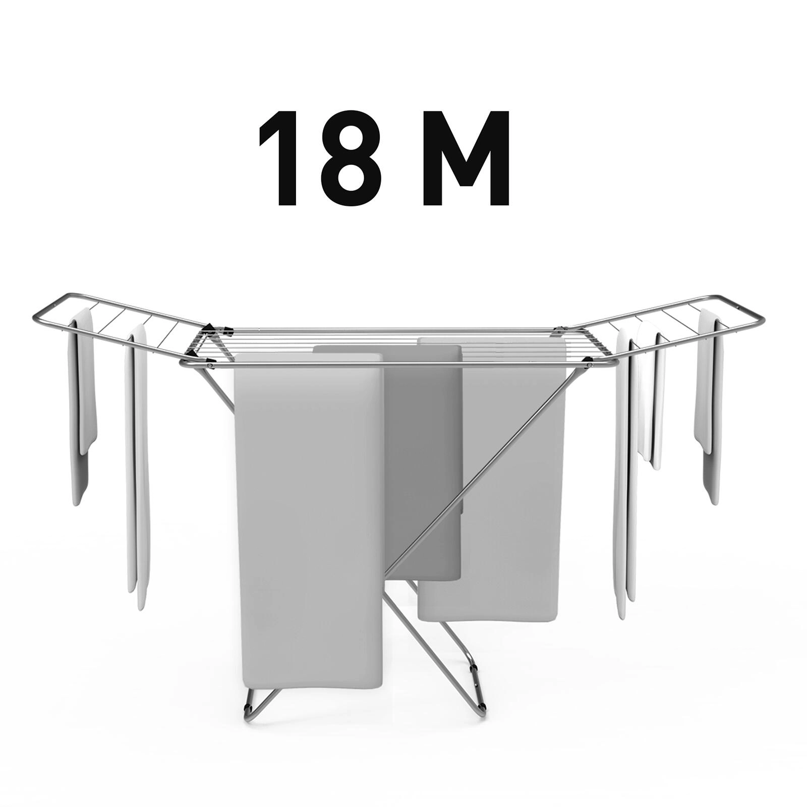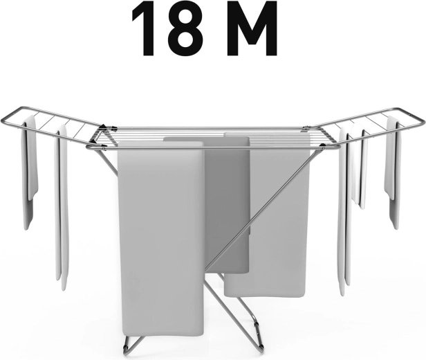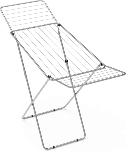 Volně stojící skládací sušák na prádlo Aegenstar Lux ve stříbrném provedení je spolehlivým pomocníkem pro každodenní sušení doma i na balkoně. Díky 18 metrům sušicí plochy pohodlně usušíte velkou dávku prádla, včetně prostěradel a ručníků.