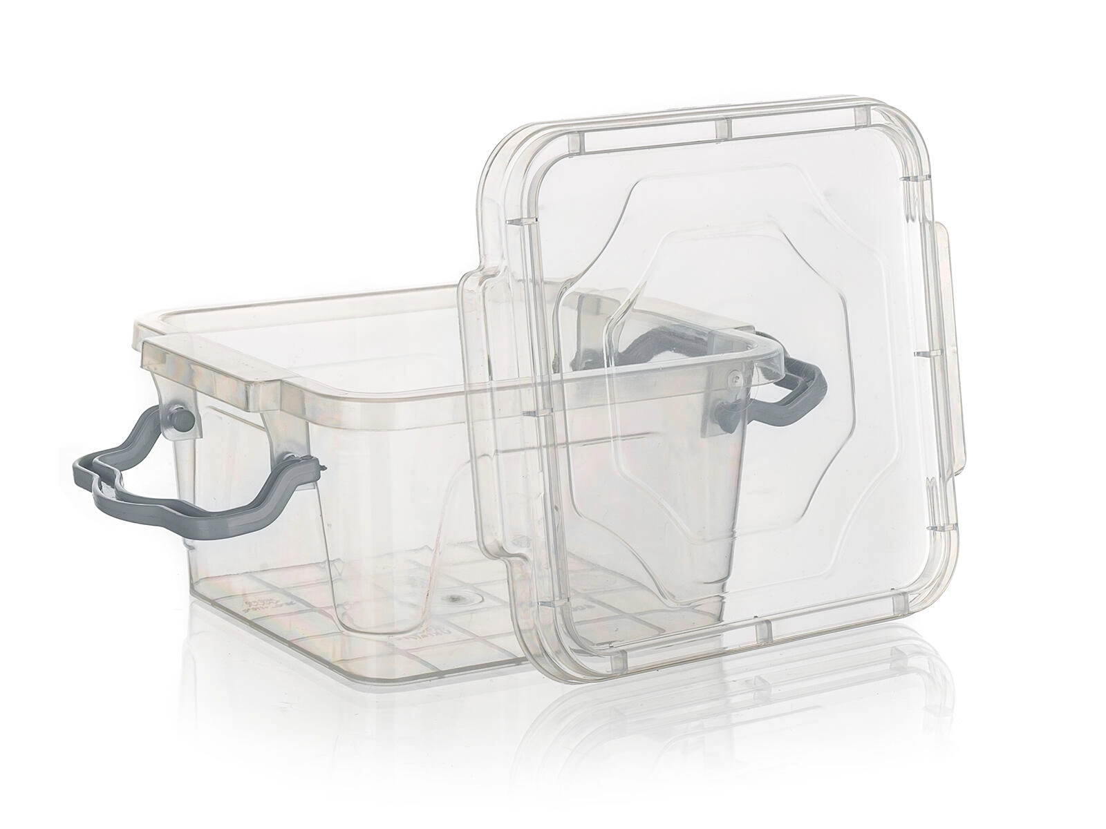 Dóza Gema je univerzální pomocník pro každodenní uchovávání potravin. Díky transparentnímu provedení máte vždy přehled o obsahu, zatímco pevná tyrkysová madla usnadňují manipulaci a bezpečné uzavření. Čtvercový tvar šetří místo v lednici, mrazničce i kuchyňské skříňce.