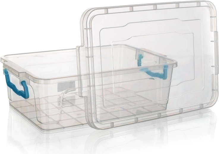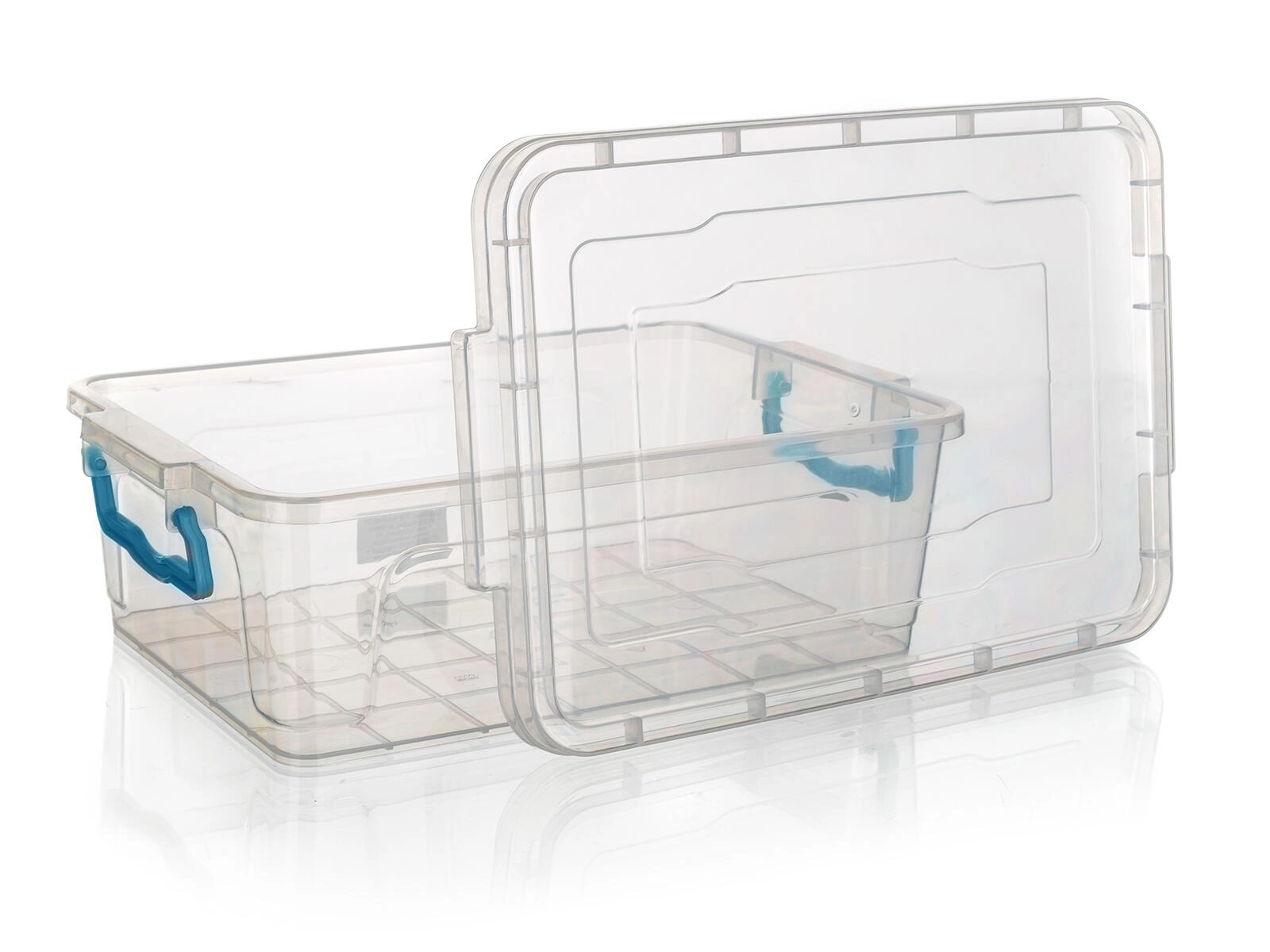 Dóza GEMA obdélníkového tvaru nabízí přehledné a hygienické skladování díky transparentnímu provedení. Díky pevným tyrkysovým madlům se s ní snadno manipuluje a bezpečně uzavírá. Je vhodná pro uchovávání surovin, hotových jídel i drobného kuchyňského příslušenství.