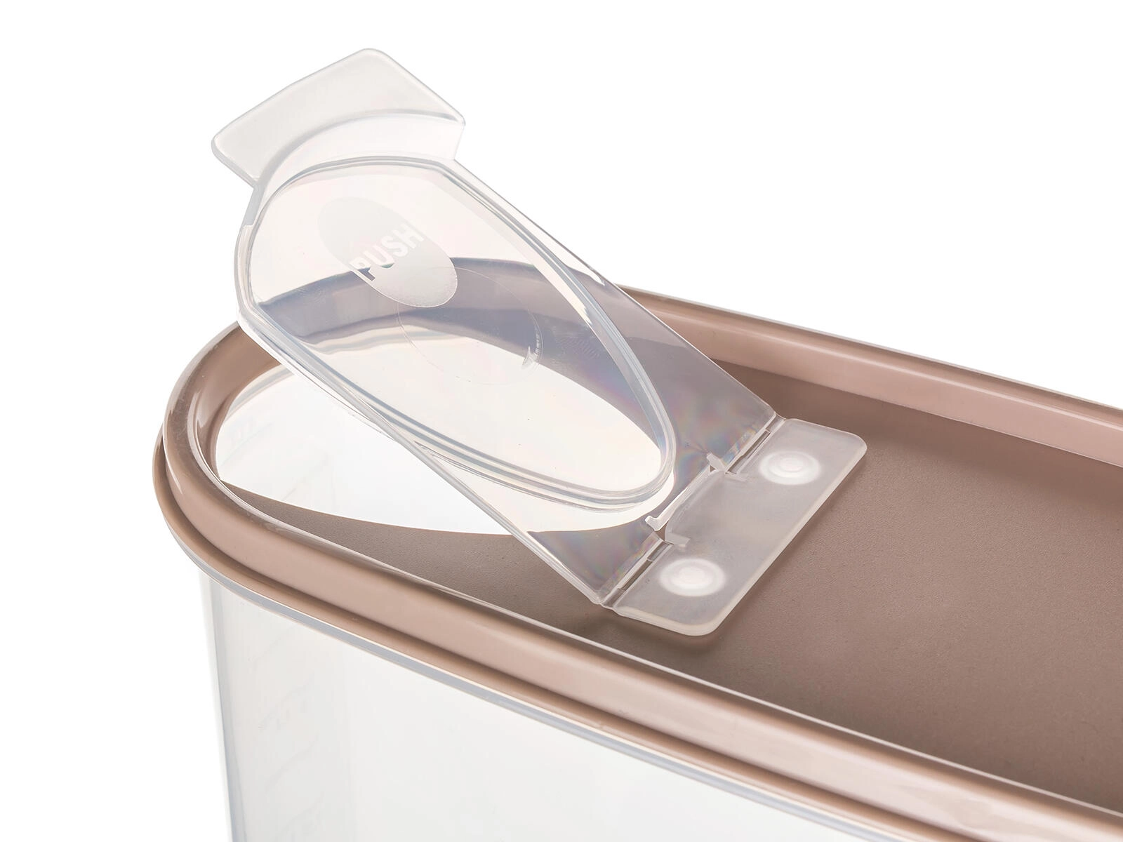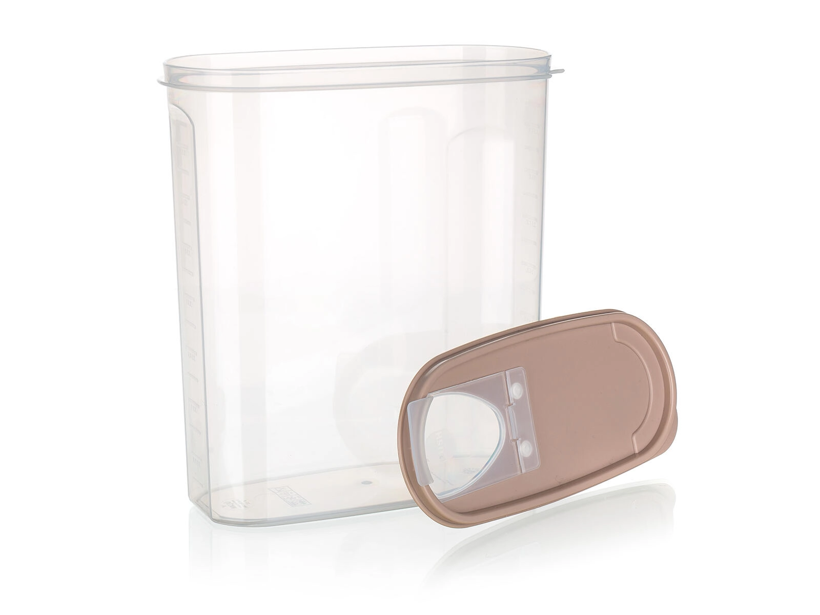 Využijete ji na těstoviny, cereálie, rýži, mouku, cukr, luštěniny či krmivo pro domácí mazlíčky. Díky kompaktnímu, vysokému tvaru šetří místo v policích a zásuvkách a dobře se kombinuje s dalšími dózami pro přehledný systém skladování.