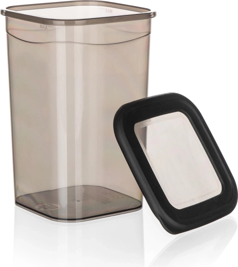 Dóza LISSA kombinuje moderní kouřové provedení s praktickým čtvercovým tvarem pro efektivní využití prostoru. Průhledné stěny umožní rychlou kontrolu zásob a zacvakávací víčko napomáhá ochránit obsah před vlhkostí a nečistotami. Ideální pro každodenní organizaci spíže.