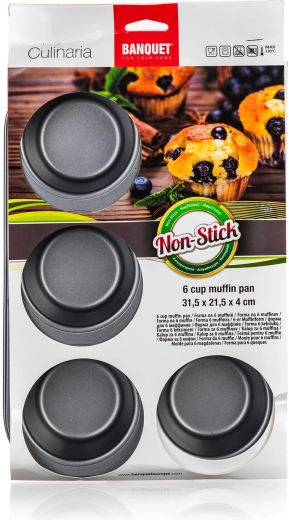 Praktická forma na muffiny CULINARIA pro pečení 6 kusů lahodných muffinů. Díky nepřilnavému povrchu XYNFLON na bázi PTFE se těsto nepřichytává a forma se snadno čistí. Robustní provedení s tloušťkou 0,4 mm a rozměry 31,5 × 21,5 × 4 cm zajistí rovnoměrné propečení a spolehlivý výsledek.