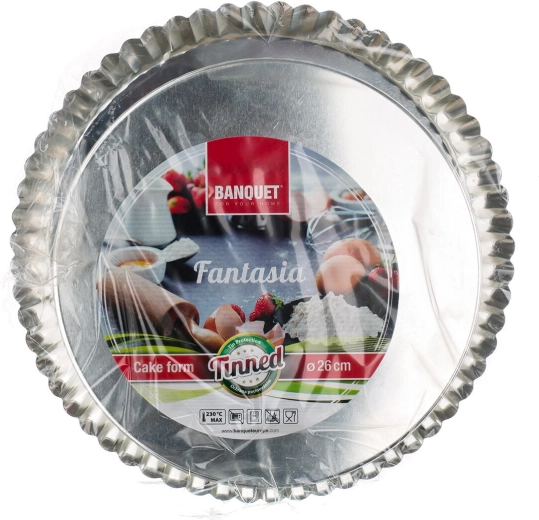 Praktická forma na koláč o průměru 26 cm z řady FANTASIA s oddělitelným dnem pro snadné vyklápění. Pocínovaný plech zajišťuje rychlý a rovnoměrný rozvod tepla, je odolný a umožňuje použití kovového náčiní. Vhodná do elektrické, plynové i horkovzdušné trouby – ideální pro sladké i slané koláče a quiche.