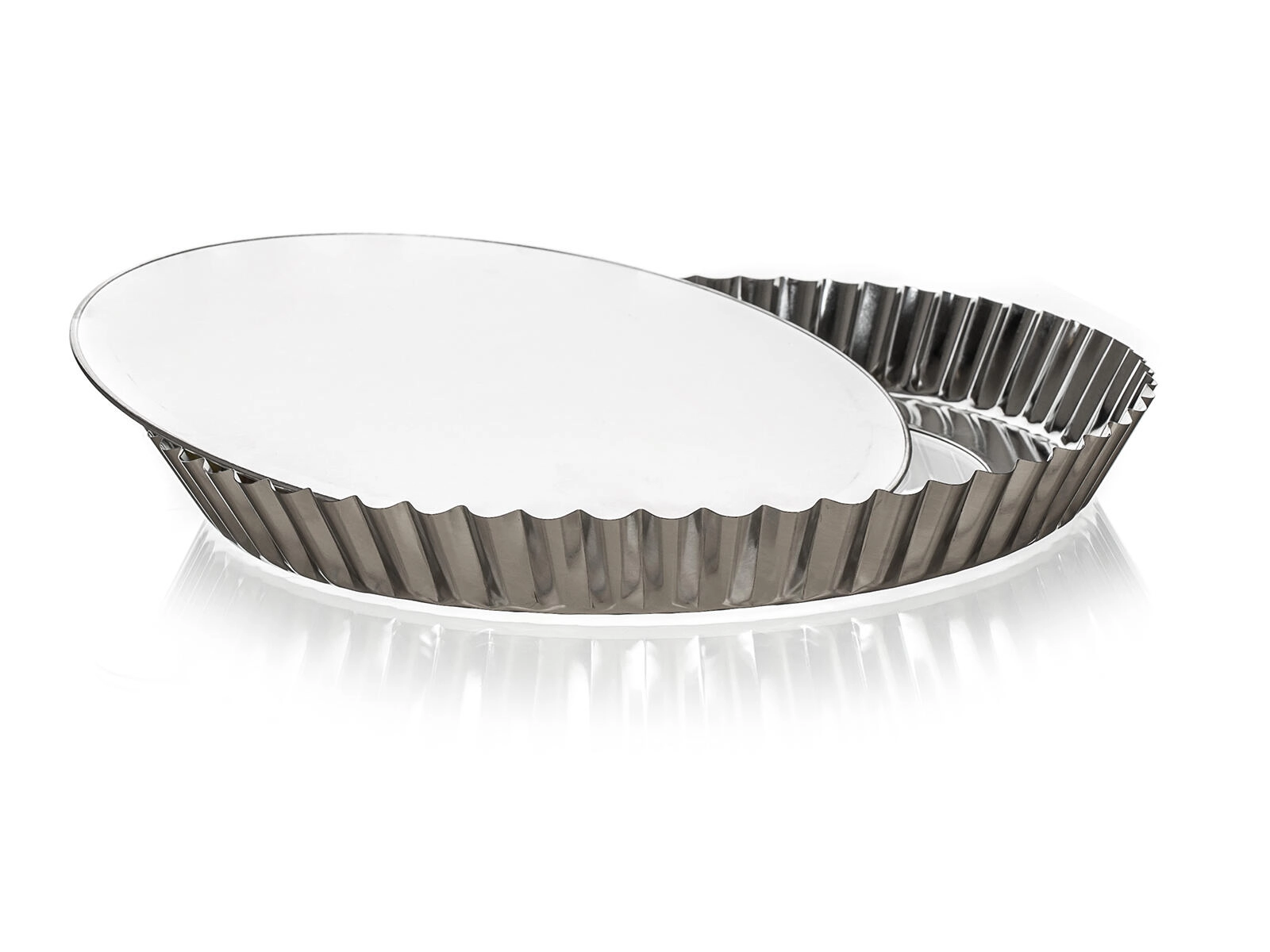 Dvoudílné provedení s oddělitelným dnem umožňuje bezpečné uvolnění koláče bez poškození křehkých okrajů.