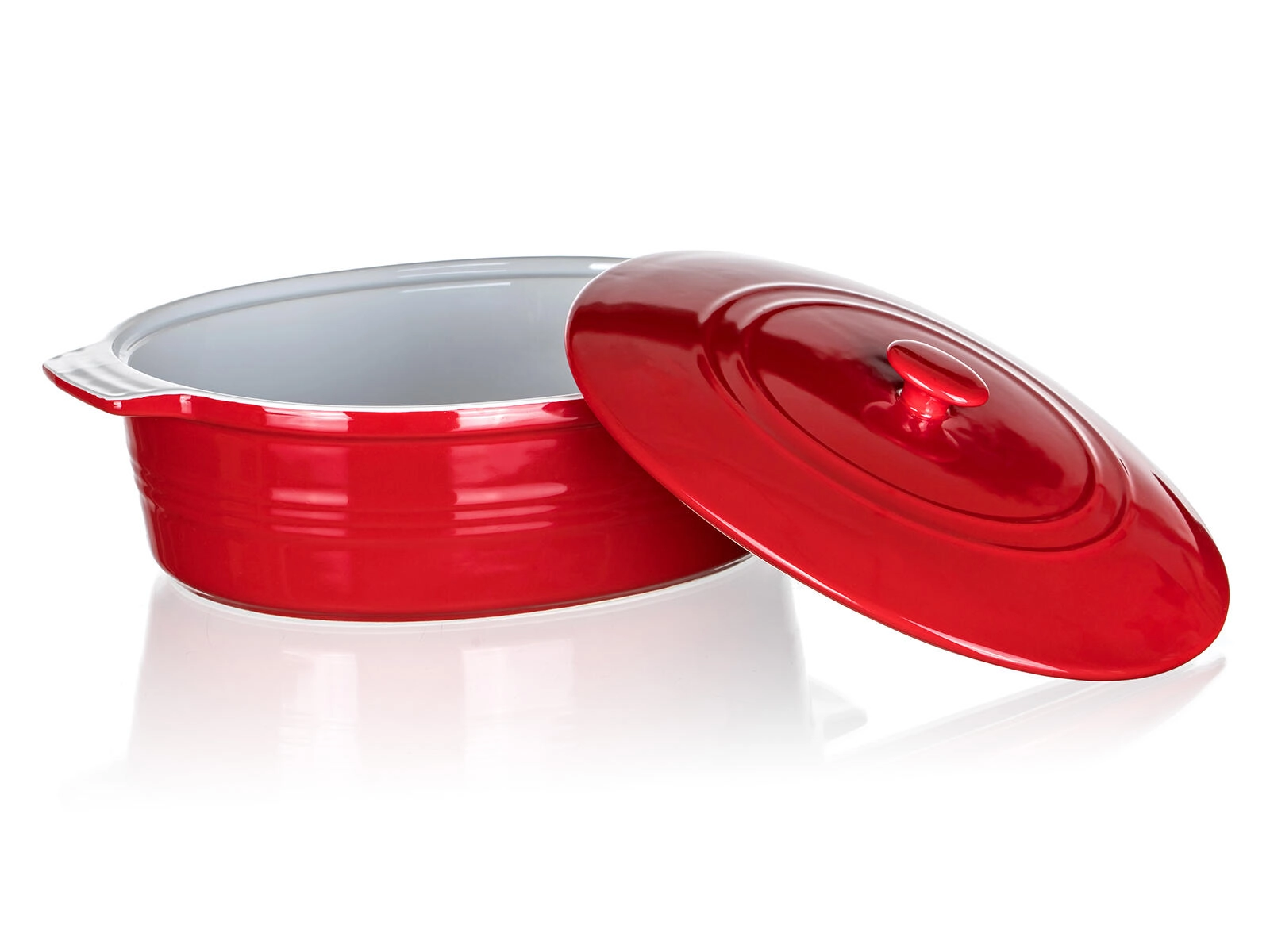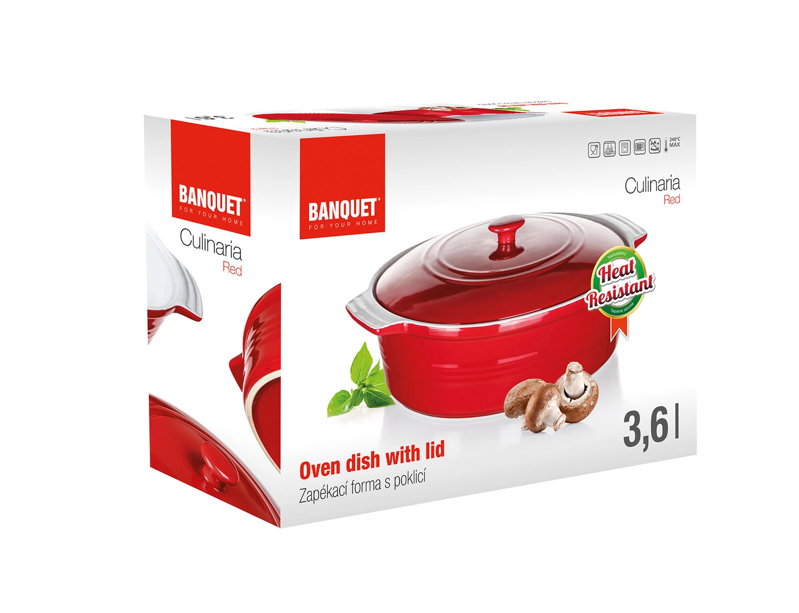 Praktická víka pomáhá udržet vlhkost a aroma uvnitř, zatímco integrovaná držadla zajišťují jistý úchop při přenášení z trouby na stůl. Elegantní červený povrch zvenčí promění každé servírování v stylovou událost.