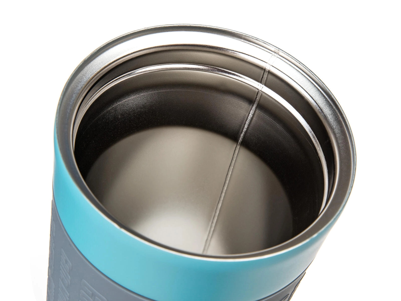 Objevte praktičnost a eleganci v jednom. Termohrnek MATTY je vyroben z kvalitní nerezové oceli s dvoustěnnou konstrukcí pro spolehlivou tepelnou izolaci. Modré provedení se silikonovým rukávem nejen dobře vypadá, ale také se příjemně drží a neklouže.