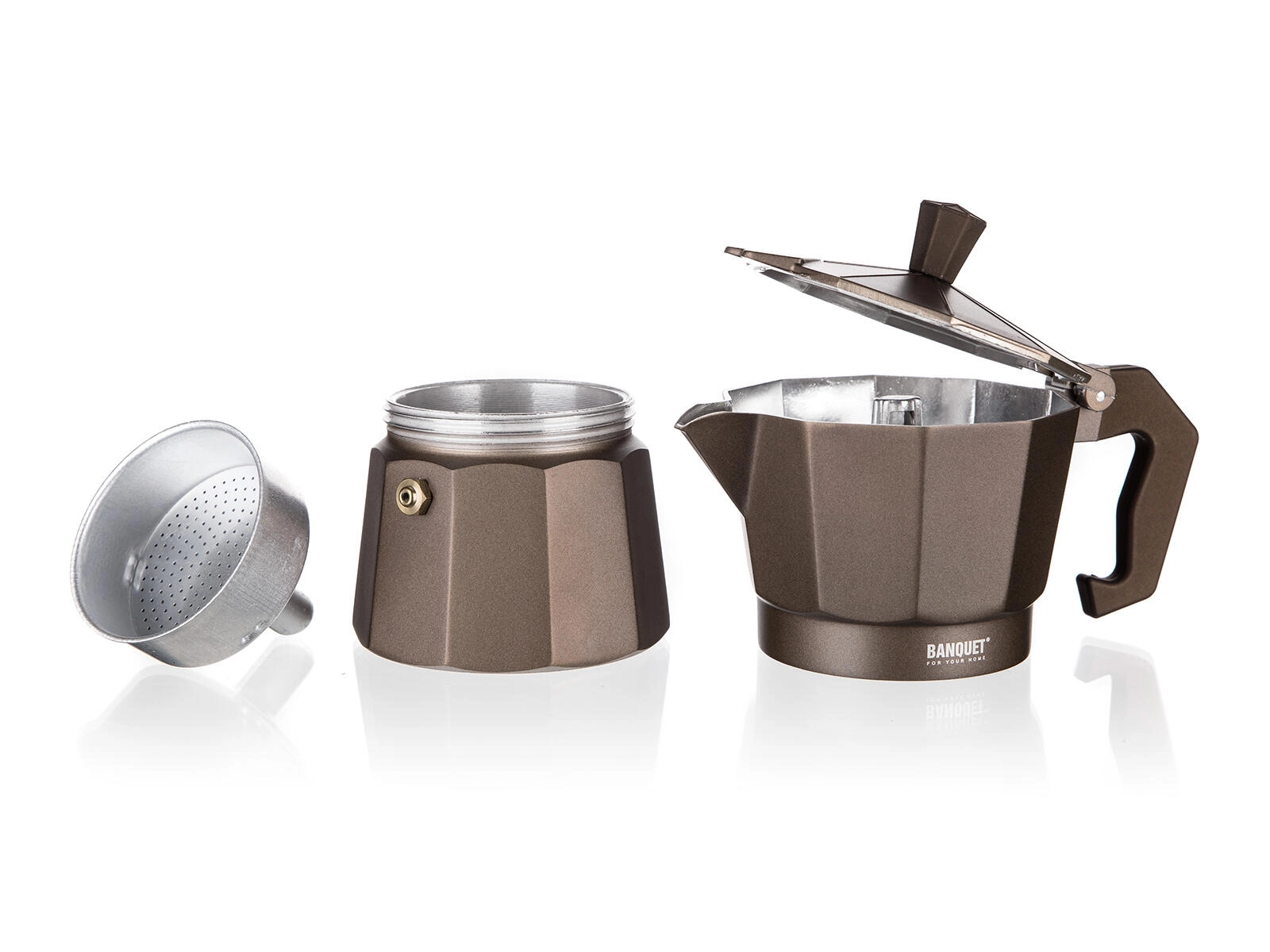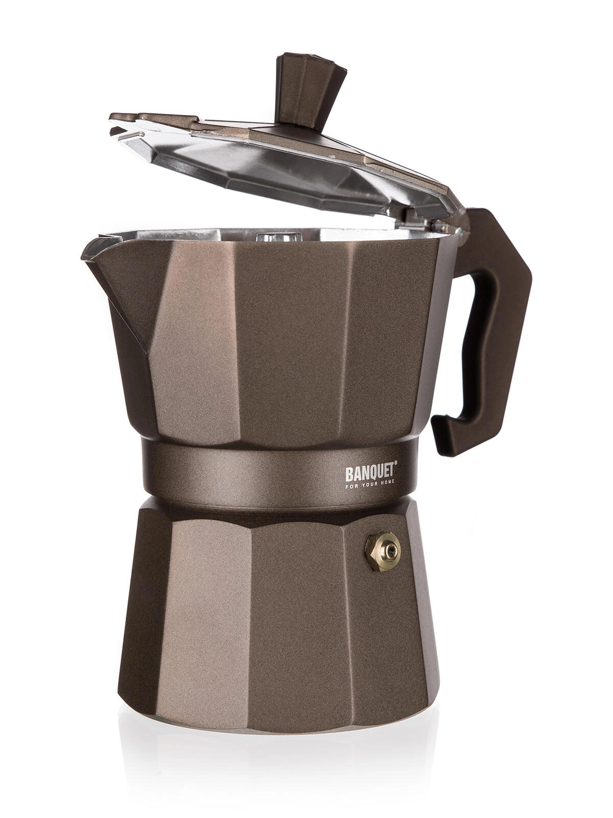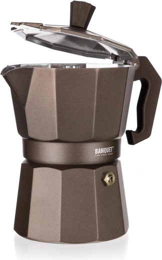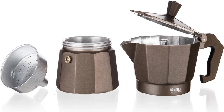 Užijte si poctní espresso styl s moka konvičkou BANQUET CAMPI. Klasická hliníková konstrukce rychle vede teplo, po pár použitích získá jemnou patinu pro autentickou chuť kávy. Díky bezpečnostnímu ventilu a pohodlné rukojeti je příprava kávy jednoduchá a bezpečná.