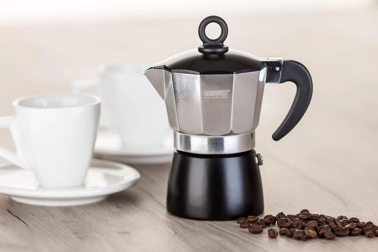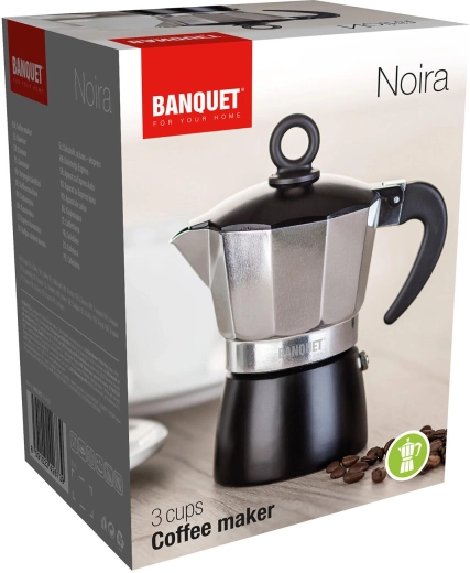 Kávovar NOIRA 3 šálky – hliníkový moka kávovar, černý
