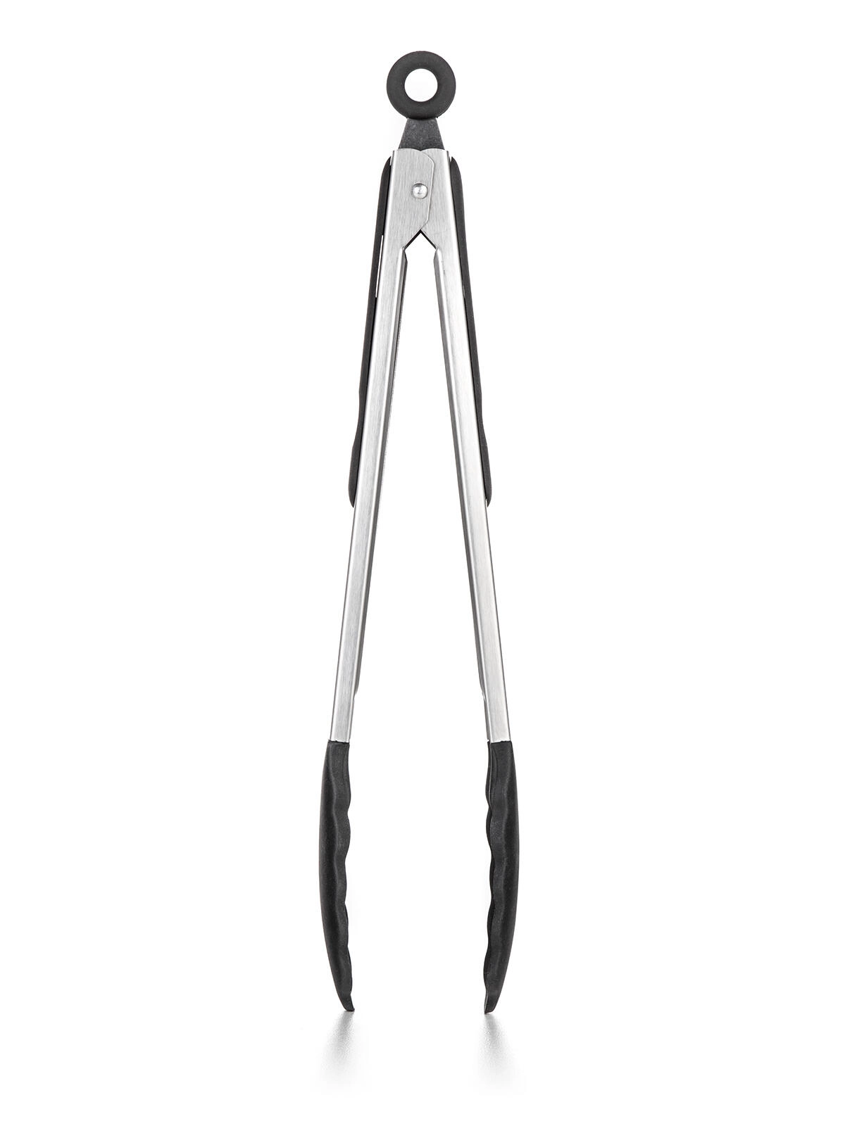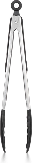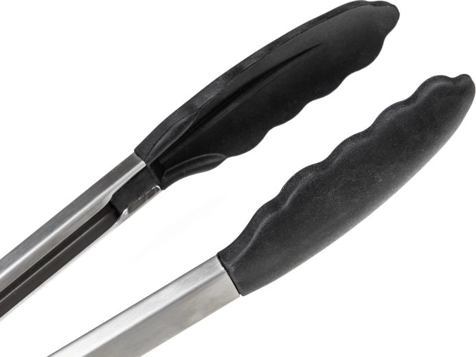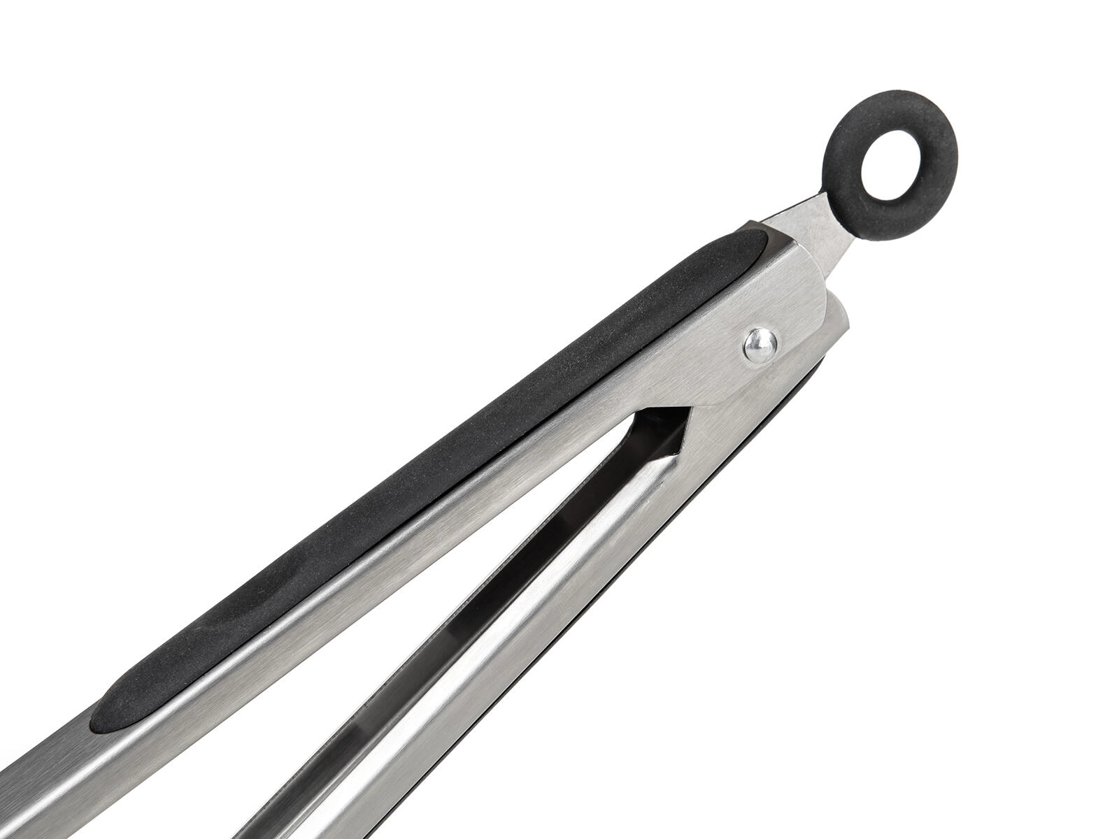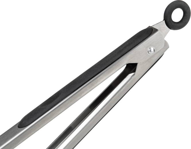 Praktický kroužek v horní části slouží jako pojistka/lock pro uzavření kleští a také jako oko na zavěšení. Díky ergonomickým úchopům se s kleštěmi pohodlně pracuje i při delším vaření.