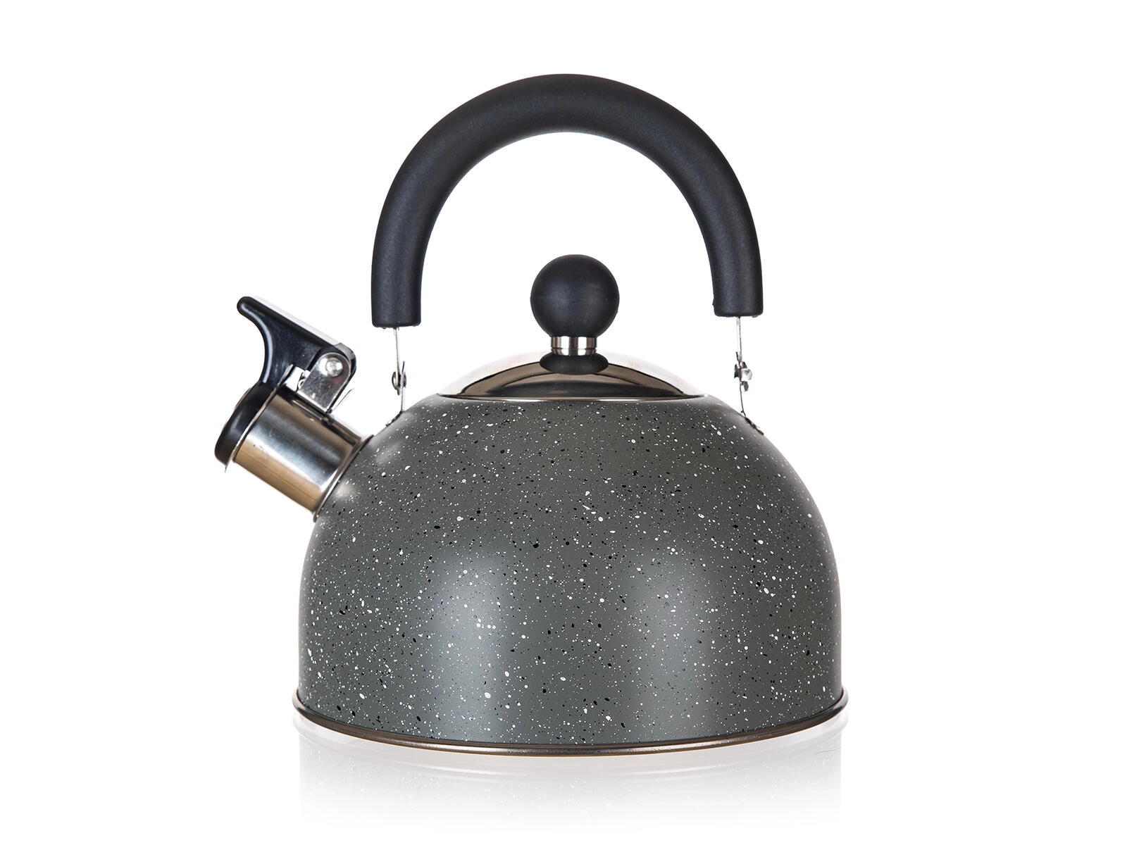 Stylová čajová konvice s objemem 1,7 l v elegantním provedení Granite Grey kombinuje odolnou nerezovou ocel a pohodlné používání. Díky zabudované píšťalce bezpečně ohlásí var, ergonomické sklopné držadlo usnadní nalévání a kompatibilita se všemi typy sporáků včetně indukce zajistí univerzální využití v každé kuchyni.