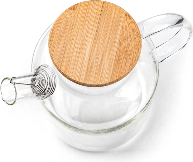 Praktické spirálové sítko v hubici zachytí bylinky, koření i větší kousky ovoce. Bambusové víčko s nerezovým krytem a silikonovým těsněním pomáhá udržet čerstvou vůni nápoje a brání pronikání vlhkosti a pachů. Skleněná nádoba je vhodná do myčky nádobí pro snadnou údržbu.