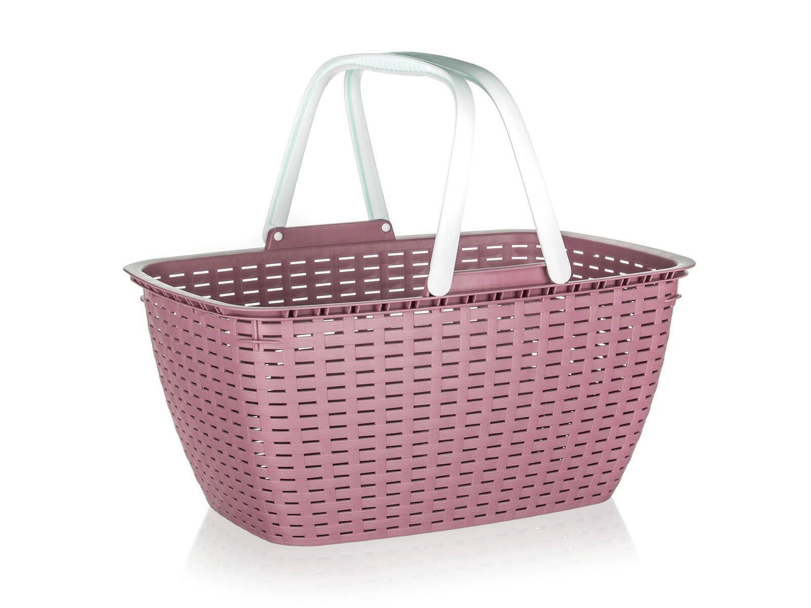 Košík má ergonomické sklopné rukojeti pro bezpečný úchop a stabilní ploché dno pro jisté odkládání. Je vyroben z odolného plastu, který se snadno čistí, a dodává se v atraktivním mixu barev, takže zapadne do každé domácnosti, kanceláře i auta.