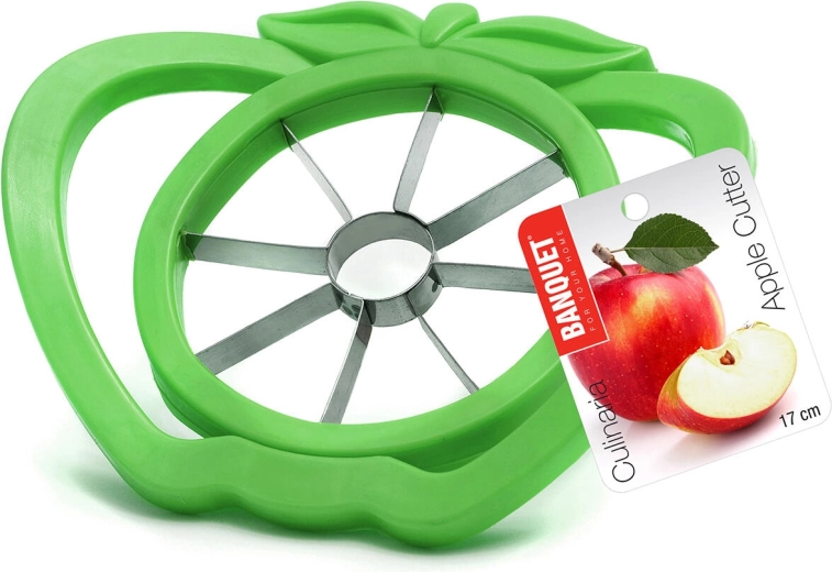 Kráječ na jablka Culinaria je šikovný kuchyňský pomocník, který šetří čas při přípravě svačin, koláčů i salátů. Jediným stlačením získáte 8 stejně velkých měsíčků a čistě odstraněný jádřinec. Ergonomické úchyty zajišťují jistý úchop a nerezové čepele snadno projdou dužinou.