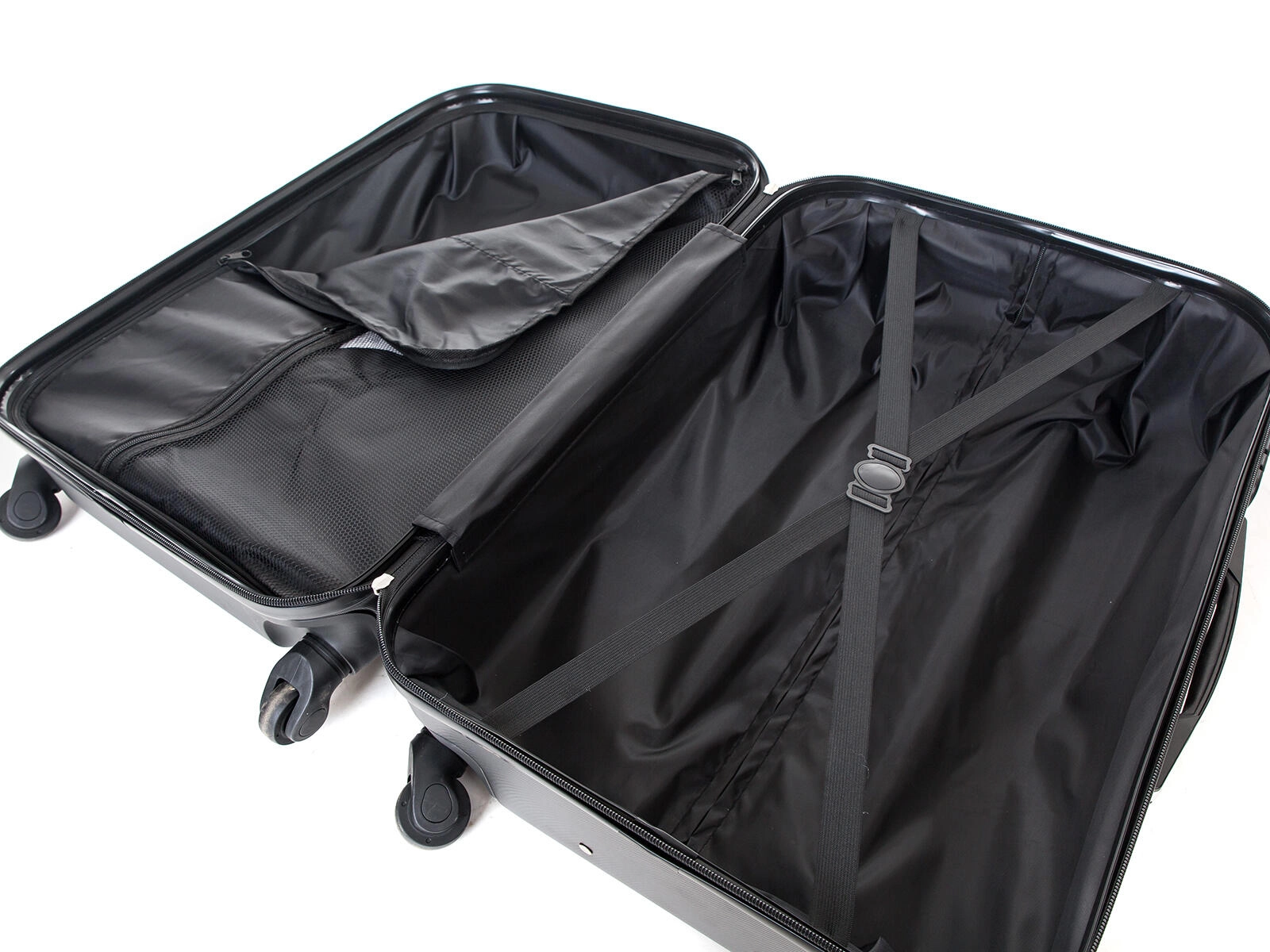 Zipperová přepážka s kapsou a křížové popruhy udržují oblečení i doplňky na místě, aby dorazily v perfektním stavu.