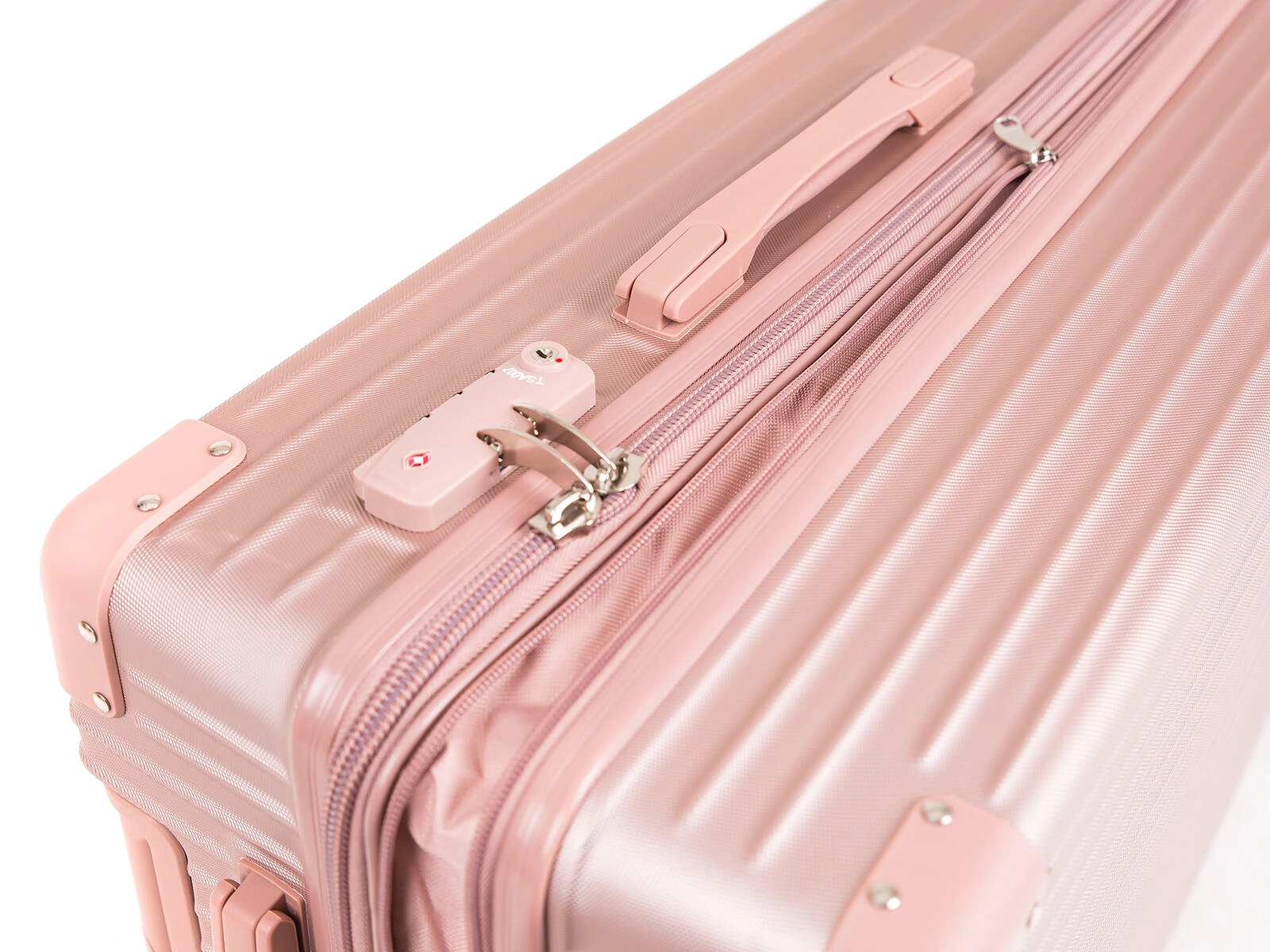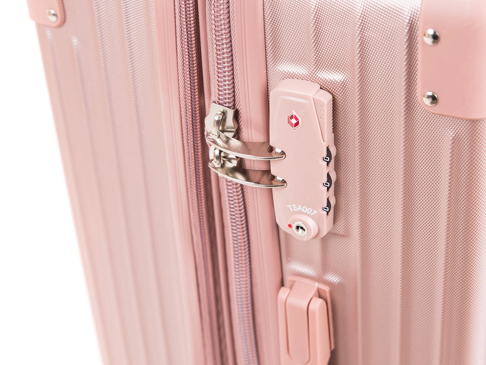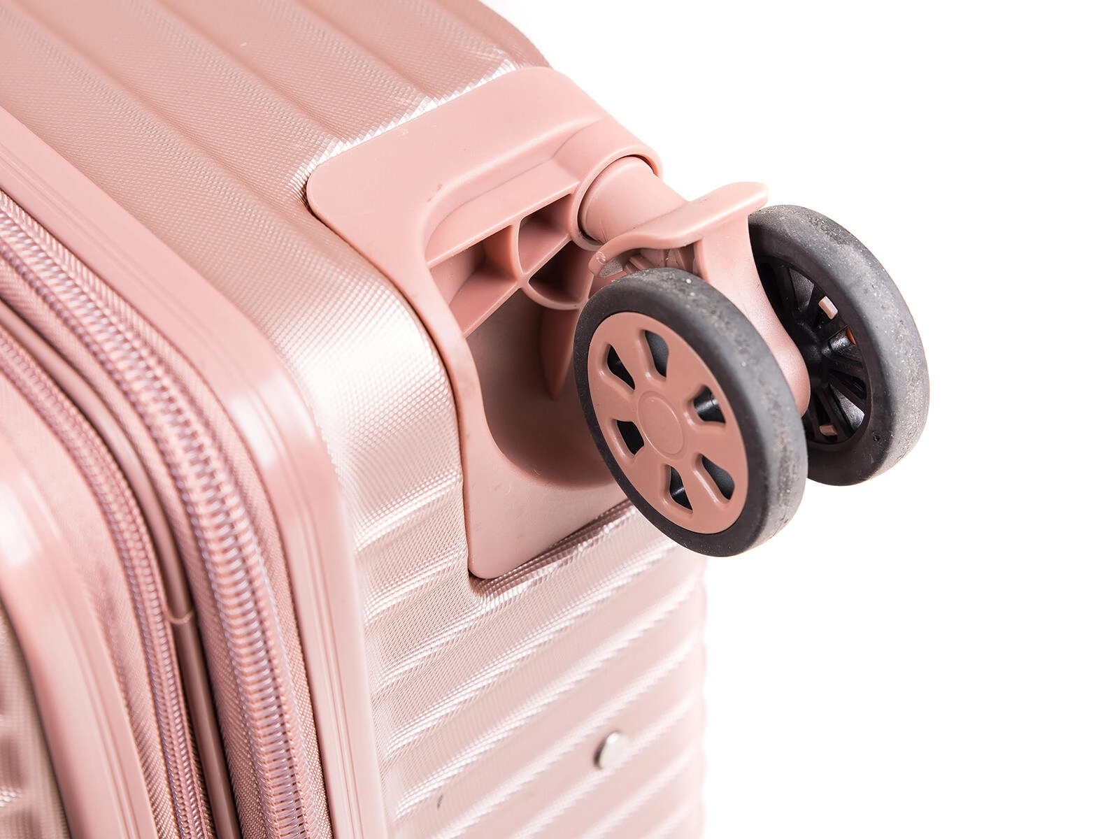 Stylový zlatorůžový skořepinový kufr je vyroben z odolného plastu ABS, který výborně odolává nárazům a ochraňuje obsah na cestách. Díky čtyřem dvojitým kolečkům otočným o 360° je manipulace plynulá i v rušném prostředí letišť a nádraží. Teleskopická rukojeť s aretací a více polohami nastavení se přizpůsobí vaší výšce pro pohodlné vedení kufru.