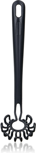 Ergonomická rukojeť dobře padne do ruky a praktické očko umožňuje zavěšení na lištu či háček. Materiál je tepelně odolný do 210 °C, takže se hodí i při vaření horkých pokrmů. Po použití ji jednoduše vložíte do myčky nádobí.