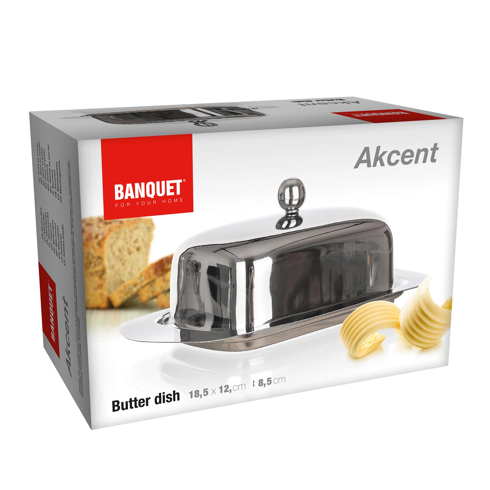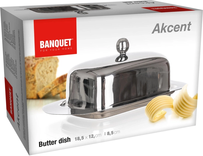 Nerezová máslenka AKCENT je praktický pomocník pro uchovávání i servírování másla. Minimalistický vzhled se hodí do moderní i klasické kuchyně a hladký povrch zajišťuje snadné čištění. Ideální pro snídaně i stolování s hosty.