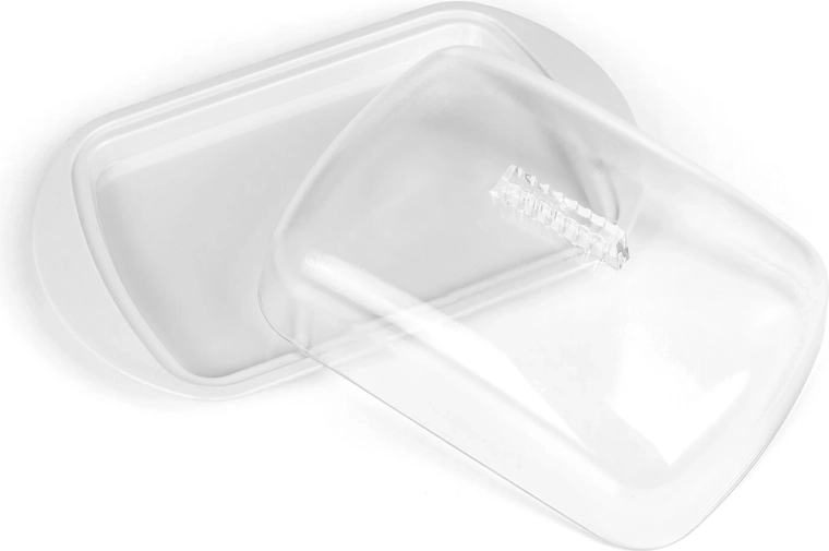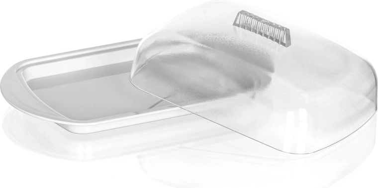 Víko s rýhovaným úchopem zajišťuje snadné zvedání a pevně sedí na podnose, aby chránilo máslo před pachy, prachom a vysycháním. Hladký povrch se snadno čistí a je vhodný pro každodenní používání v kuchyni.