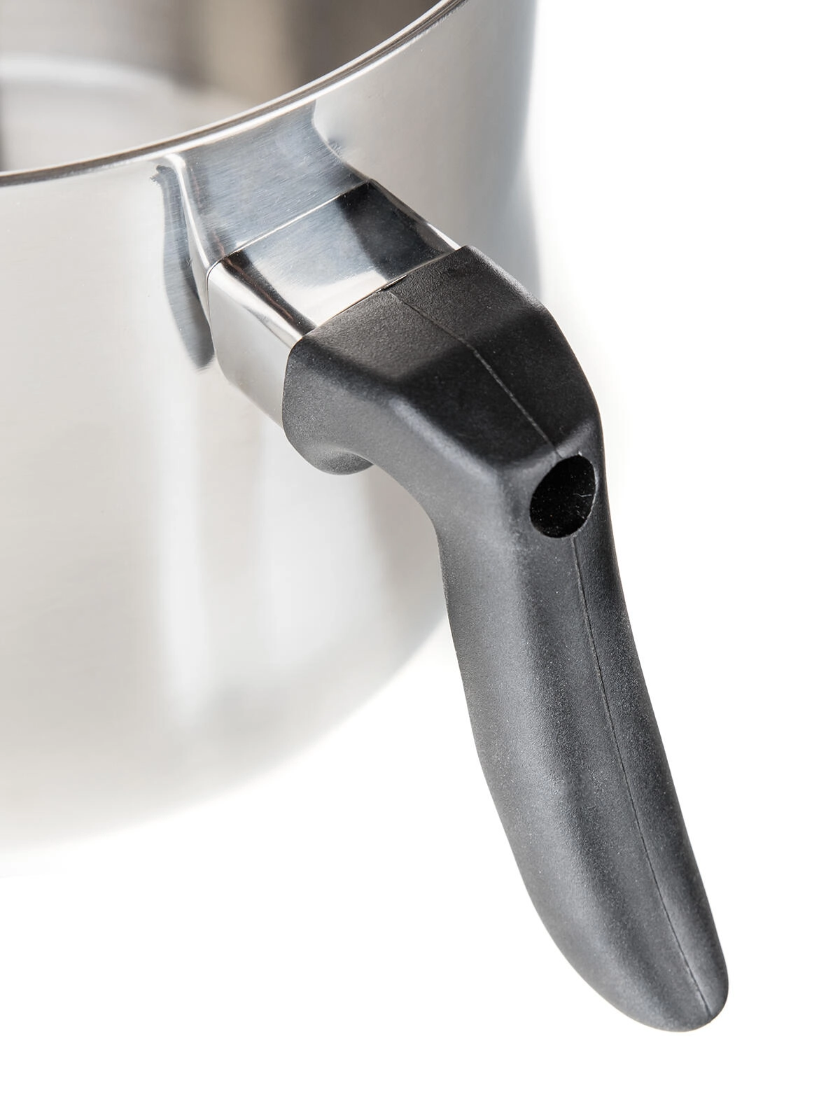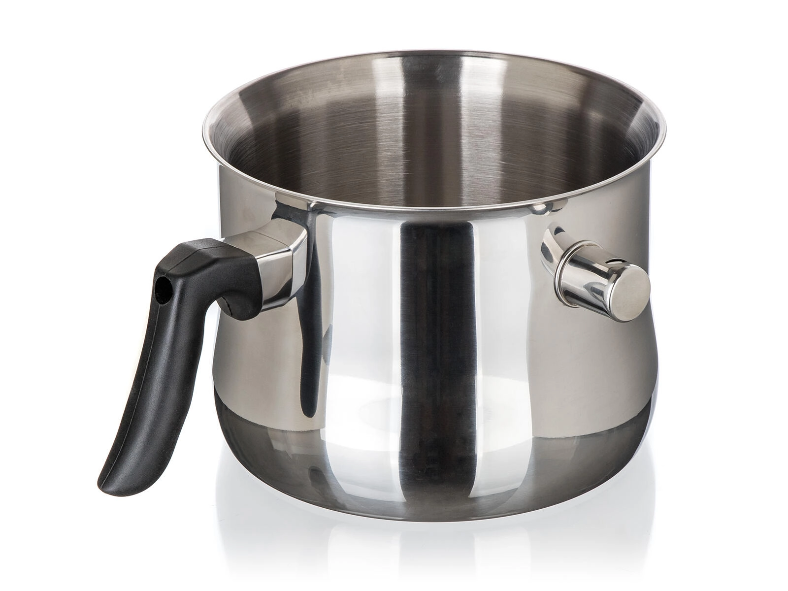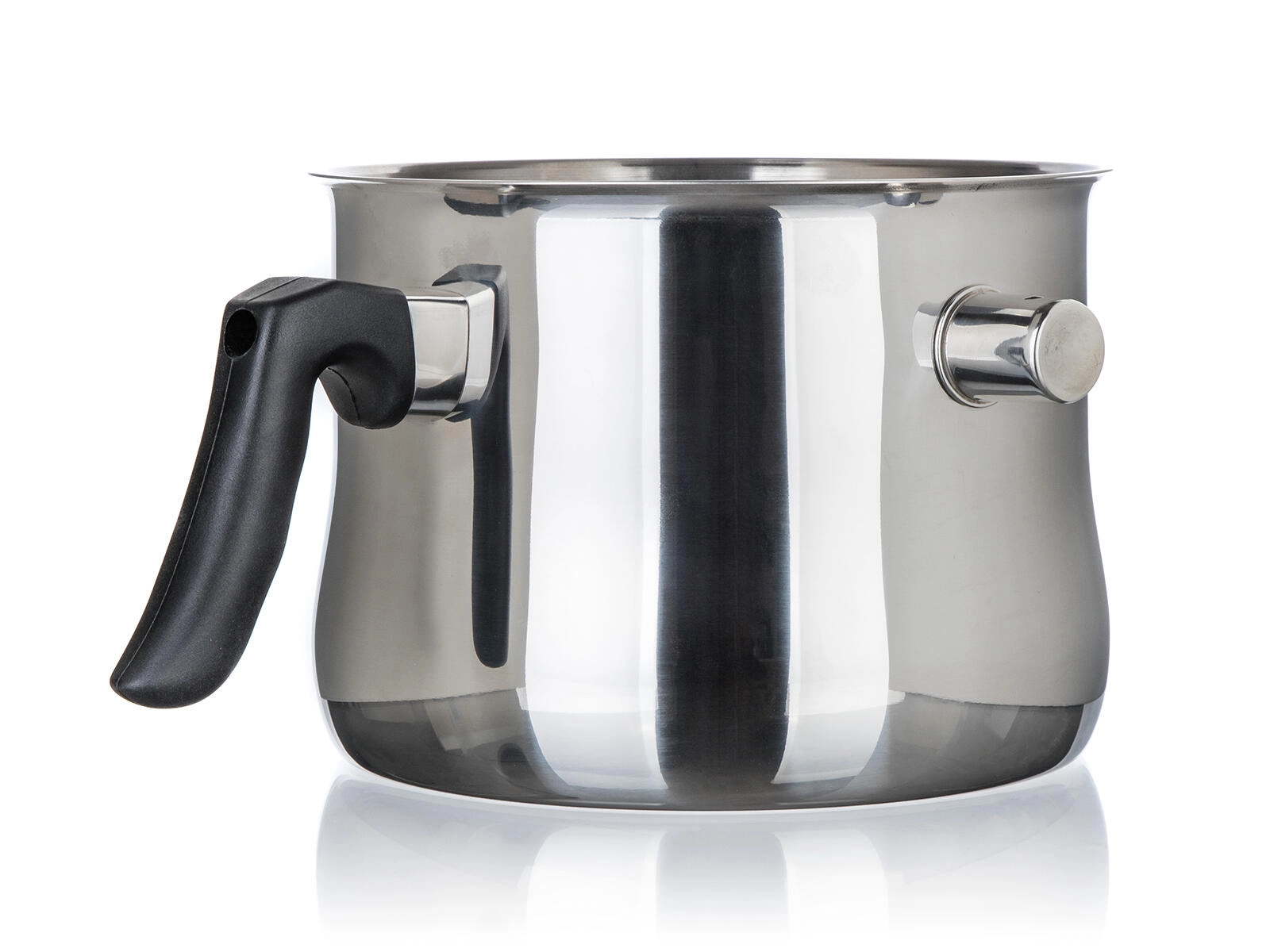 Díky kvalitní nerezové oceli je nádoba odolná, snadno se čistí a udržuje si dlouhou životnost. Mlékovar je skvělý pro každodenní přípravu mléka, pudinku, krupicové či jiné kaše, omáček nebo rozpouštění čokolády bez rizika připálení.