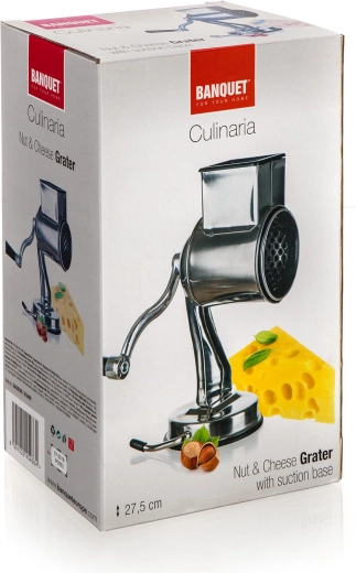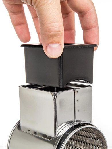 Nerezový mlýnek CULINARIA kombinuje odolnou konstrukci s jednoduchou obsluhou. Válcový buben z kvalitní nerezové oceli zajistí rovnoměrné mletí a strouhání pečiva, ořechů i tvrdých sýrů, zatímco přiložené pěchovadlo umožní bezpečné vedení surovin bez rizika poranění.