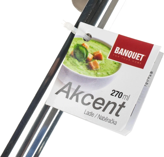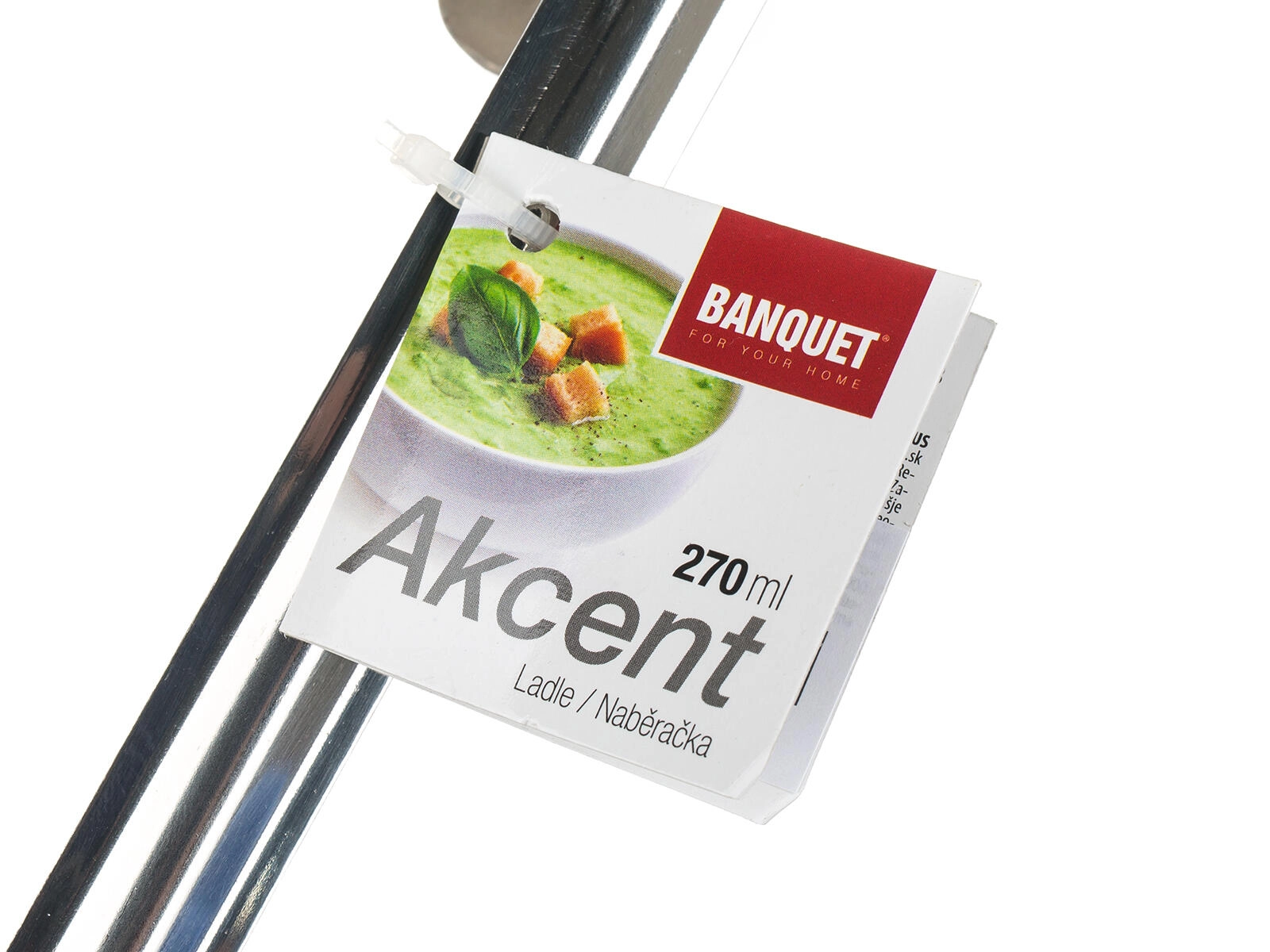 Tato robustní naběračka AKCENT z nerezové oceli usnadní každodenní servírování tekutých pokrmů. Díky hluboké misce s objemem 270 ml pohodlně naberete dostatečné množství polévky, vývaru či omáčky najednou.