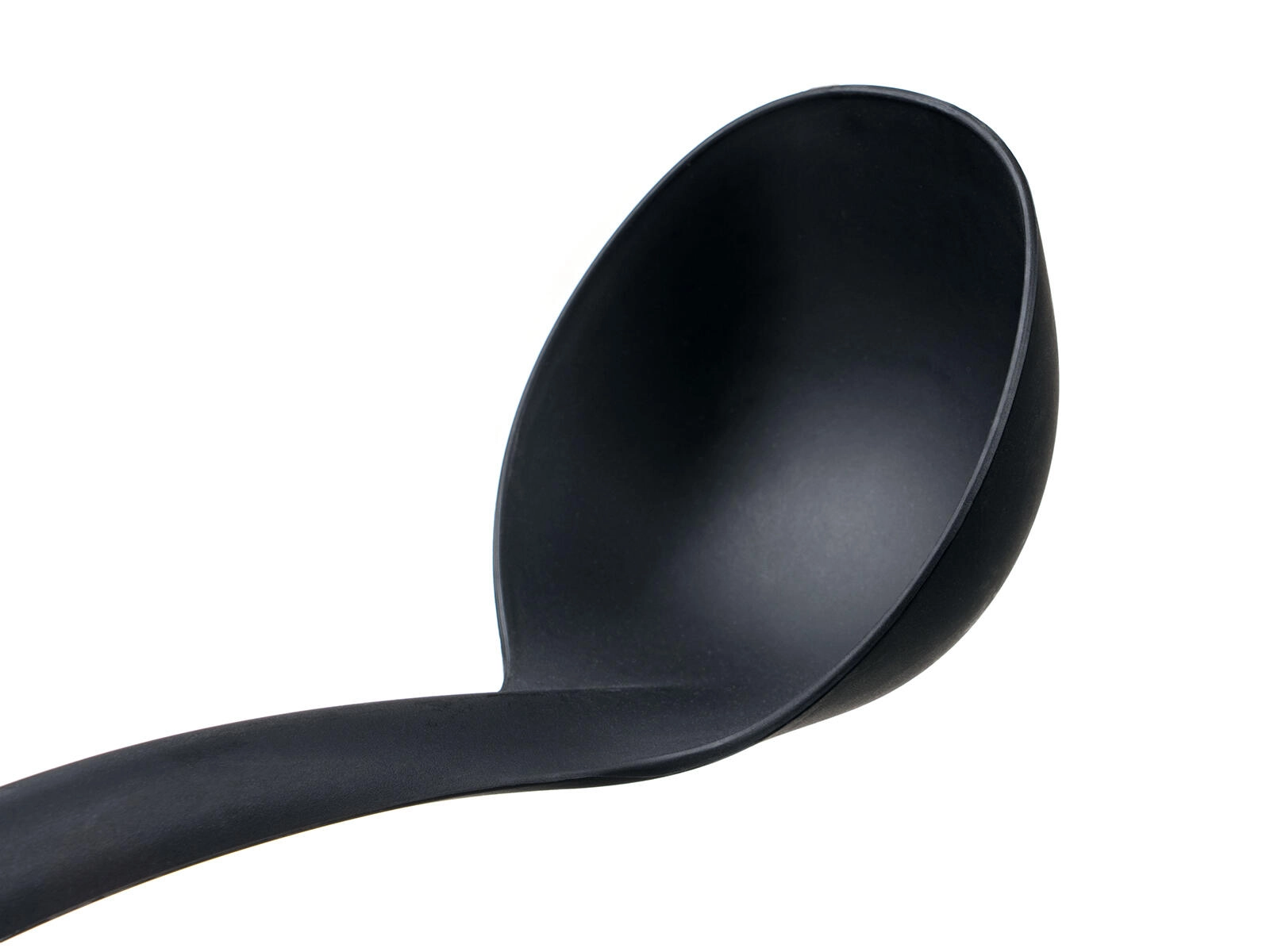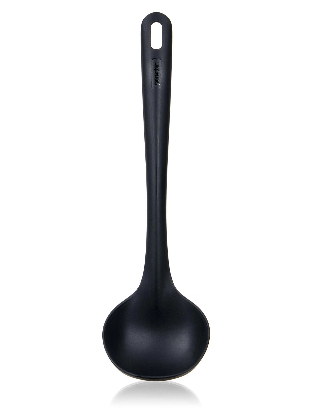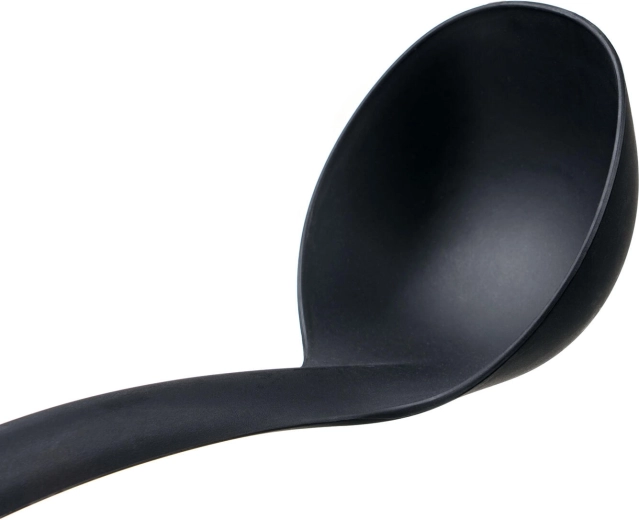 Praktická kuchyňská naběračka z odolného nylonu pro snadné servírování polévek a omáček. Je šetrná k nepřilnavému nádobí, má ergonomickou rukojeť s očkem na zavěšení, snadno se čistí a lze ji mýt v myčce. Teplotní odolnost až 210 °C.