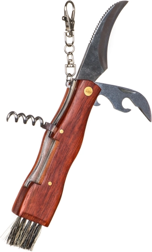 Nůž, štěteček na čištění hub, vývrtka, karabinka