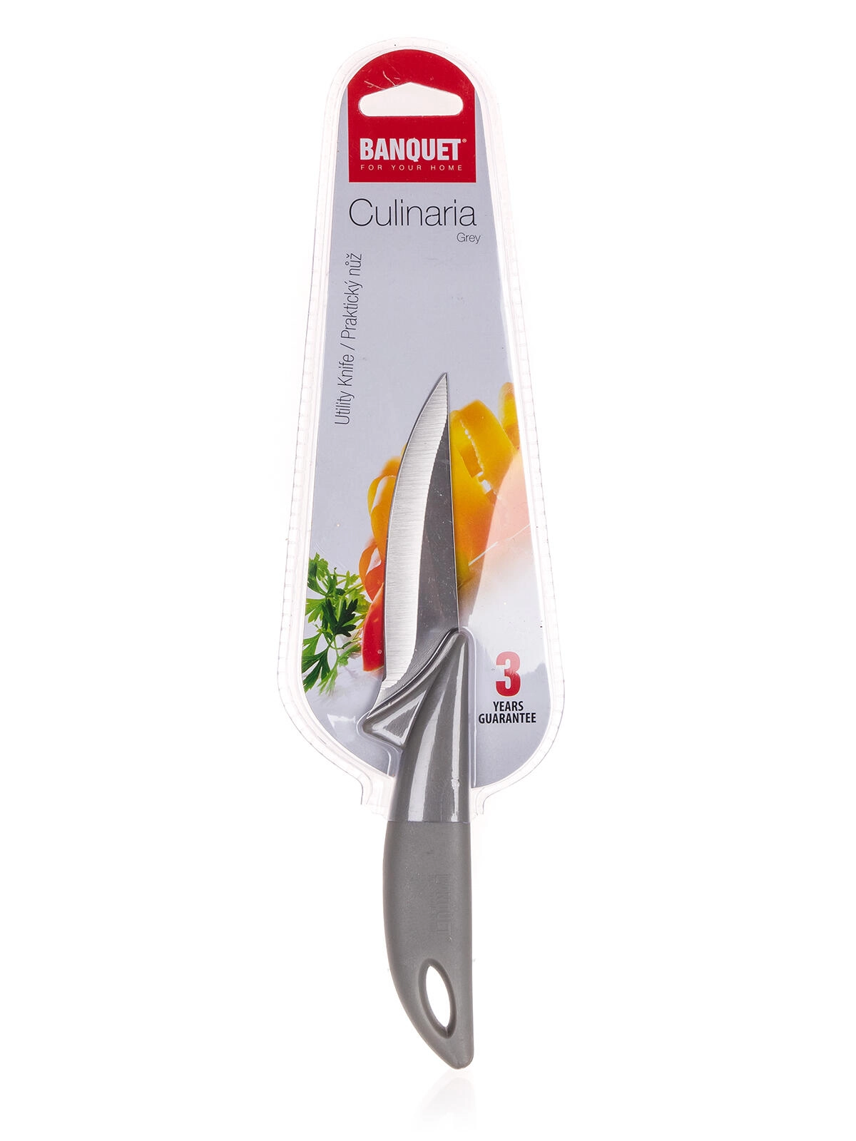 Nůž CULINARIA Grey je navržen pro všestranné použití v běžné kuchyni. Jeho 9cm ocelové ostří zajišťuje přesné a čisté řezy, zatímco lehké a pohodlné držení díky plastové rukojeti snižuje únavu při práci. Díky kompaktním rozměrům skvěle poslouží při loupání, krájení ovoce a zeleniny či jemném porcování.