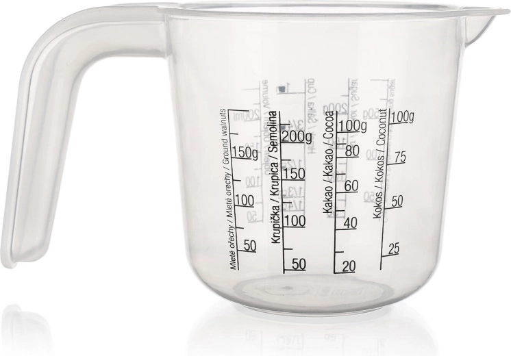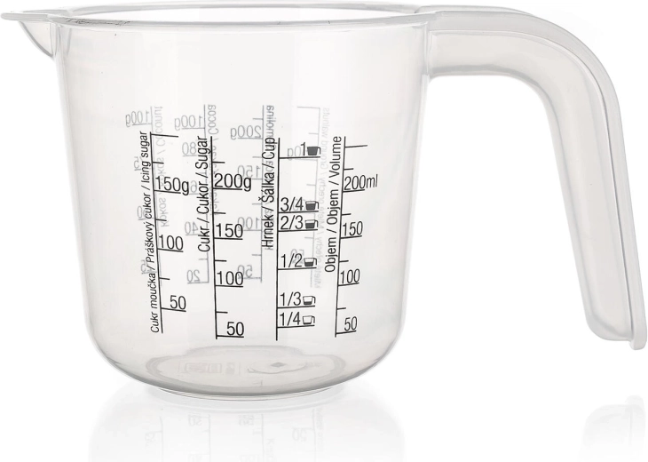 Praktická plastová odměrka o objemu 0,25 l pro snadné a přesné vaření i pečení. Díky přehledným stupnicím na sypké i tekuté suroviny a označení v ml i šálcích odměříte vše rychle a bez chyb. Odměrka je lehká, odolná a vhodná pro každodenní použití v kuchyni.