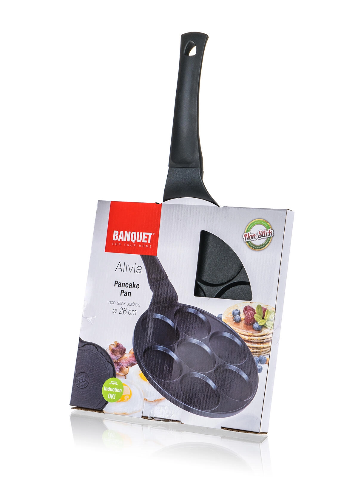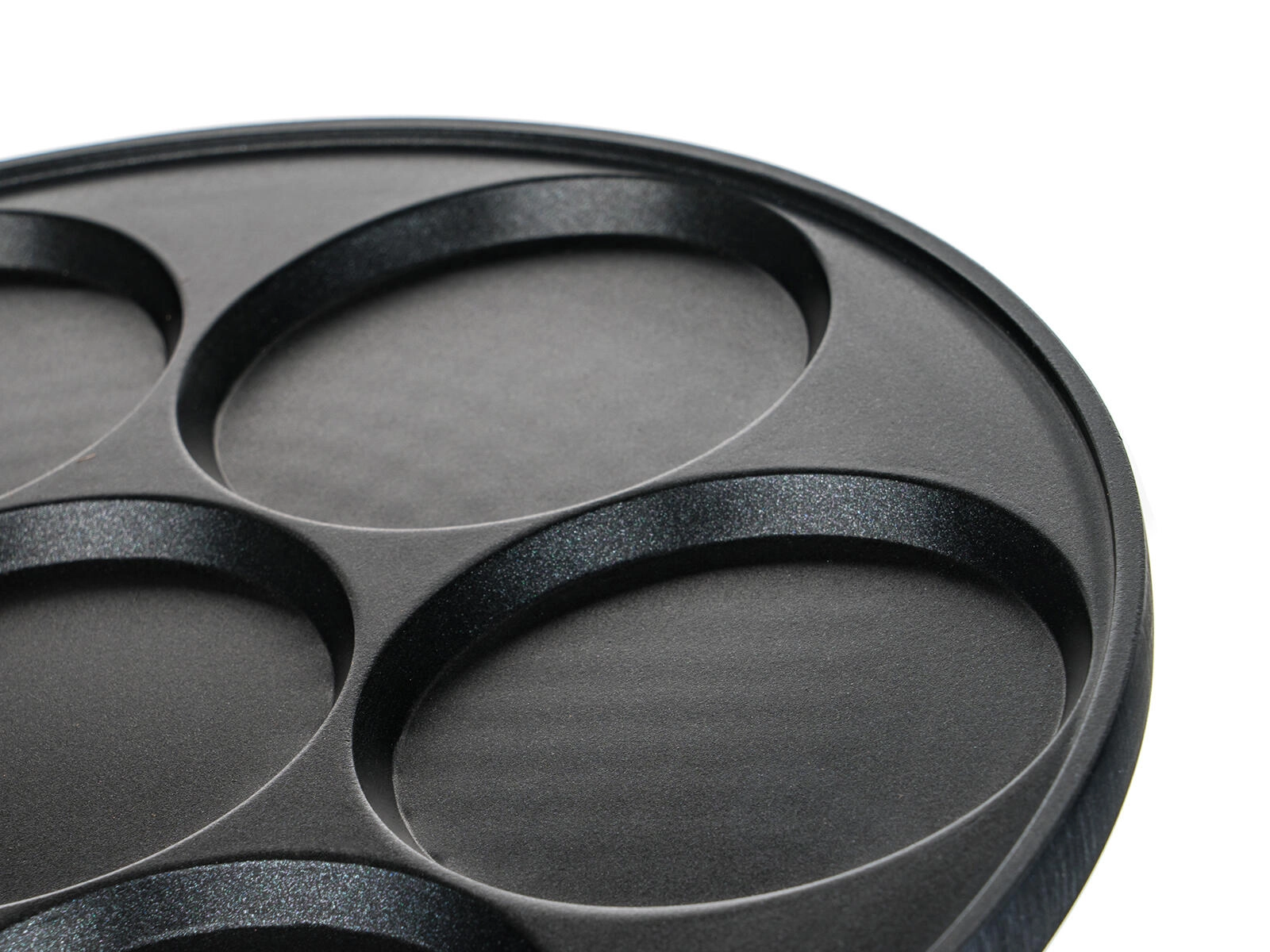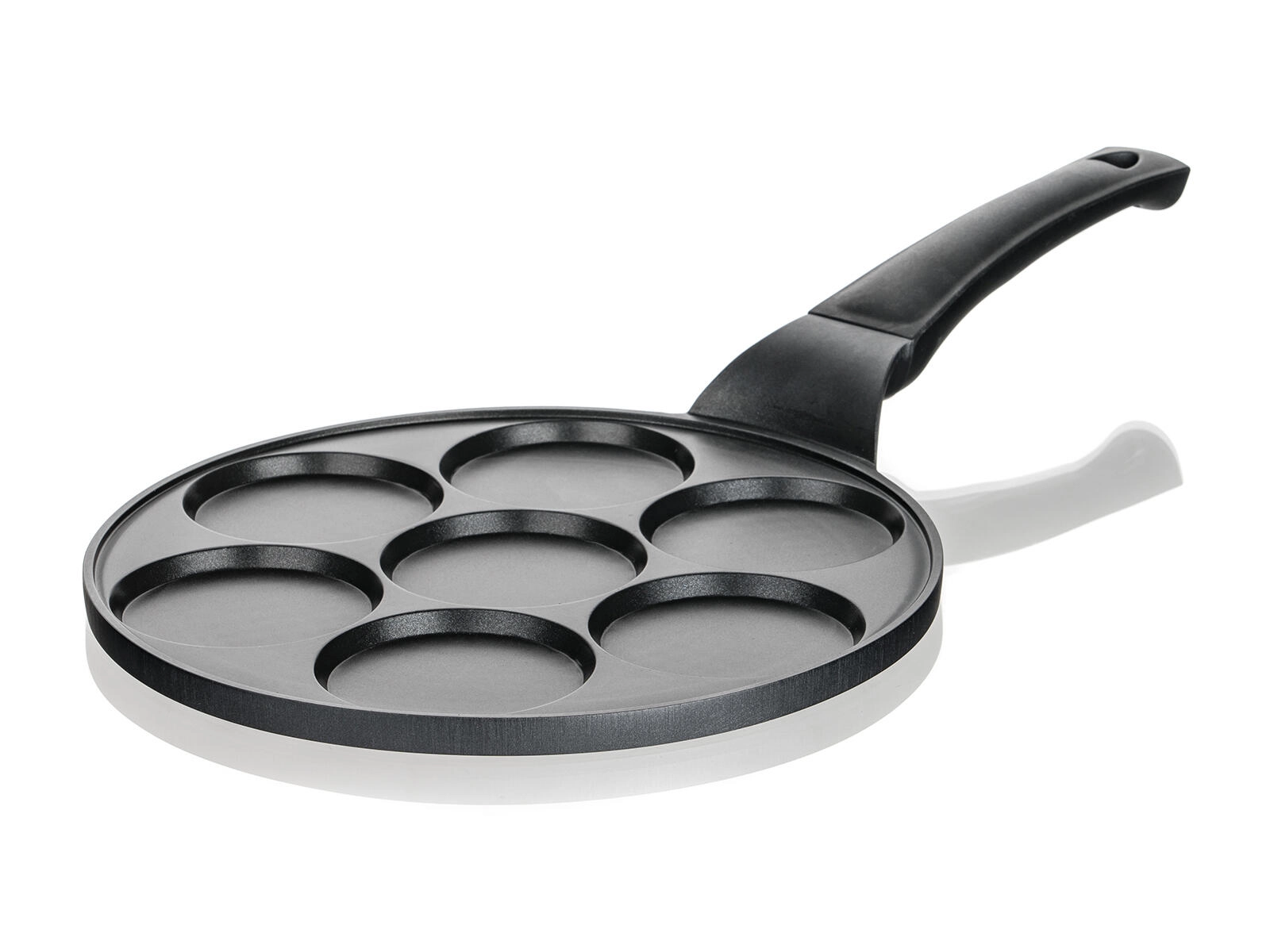 Lívanečník ALIVIA je ideální volbou pro rychlou a zábavnou přípravu snídaní i svačin. Sedm mělkých formiček s průměrem 8 cm udrží těsto přesně tam, kde má být, takže každý lívanec bude stejně velký a dokonale propečený. Odolný nepřilnavý povrch minimalizuje použití tuku a usnadňuje údržbu.