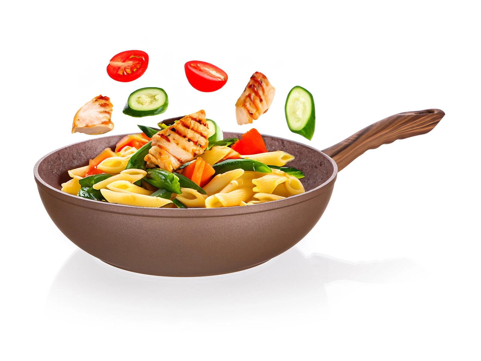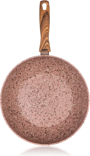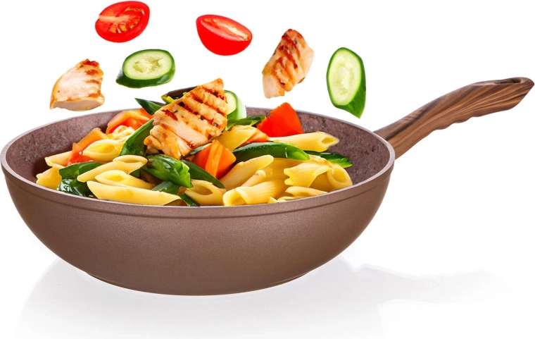 Objevte univerzální wok pánev pro zdravé a rychlé vaření. Kované hliníkové tělo výborně vede teplo, hluboký tvar (výška 7,8 cm) je ideální na stir-fry, smažení, restování i přípravu větších porcí. Dvouvrstvý nepřilnavý povrch ve struktuře kamene minimalizuje přichytávání a usnadňuje čištění.
