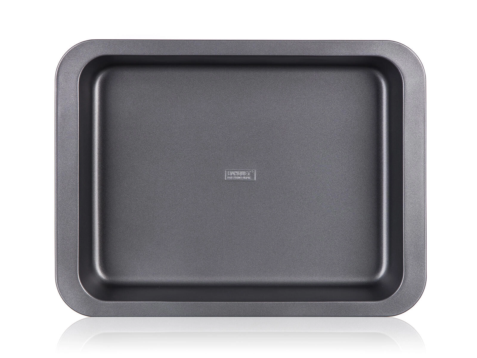 Univerzální hluboký plech na pečení CULINARIA s rozměry 36,5 × 27 × 4,5 cm nabízí kvalitní nepřilnavý povrch pro snadné vyklápění pokrmů a snadnou údržbu. Je vyroben z odolné uhlíkové oceli s povrchem XYNFLON na bázi PTFE, který zajišťuje rovnoměrné propečení a dlouhou životnost.