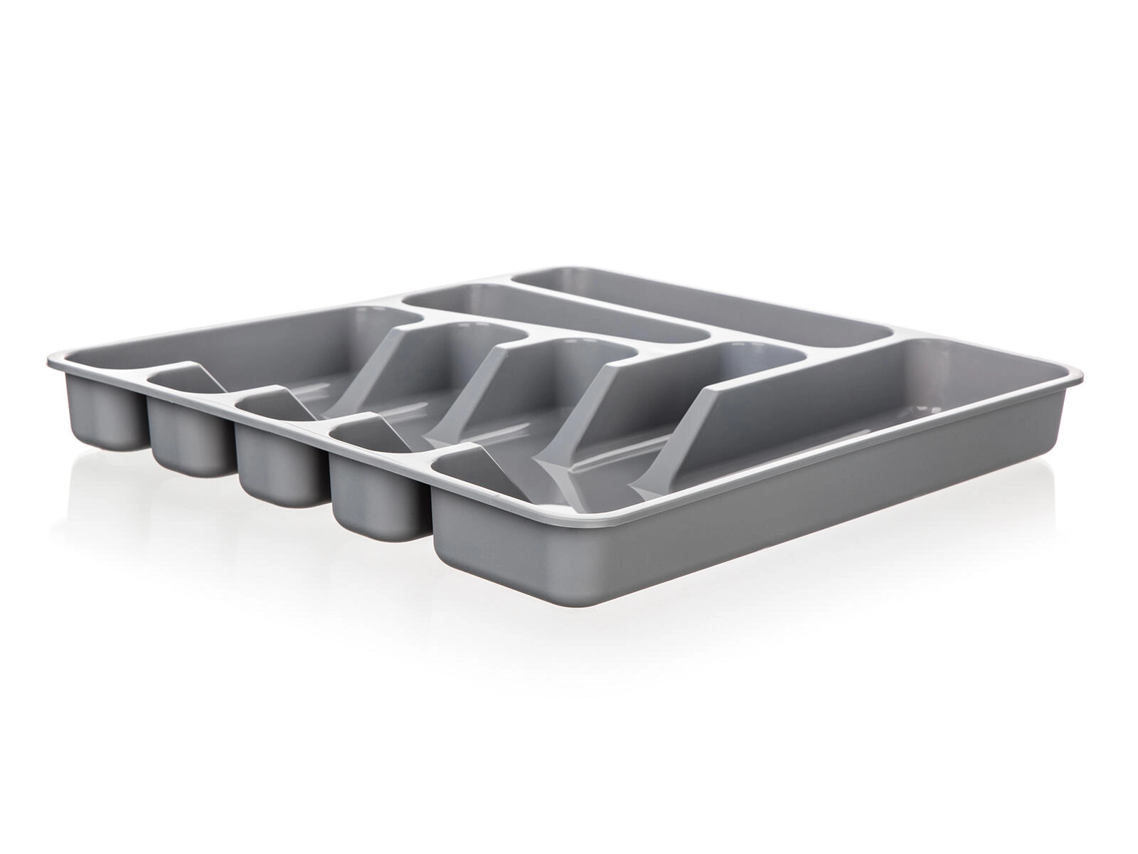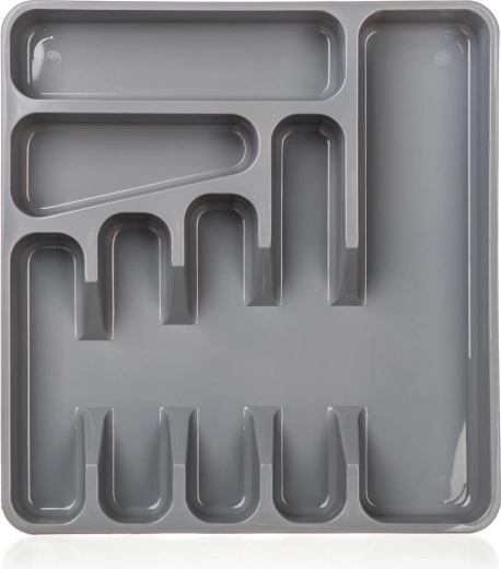 Šedý příborník z kvalitního plastu je praktickým řešením pro přehledné uložení příborů a drobného kuchyňského náčiní. Díky promyšlenému rozdělení přihrádek budete mít vidličky, nože, lžičky i malé pomůcky vždy po ruce a přesně na svém místě.