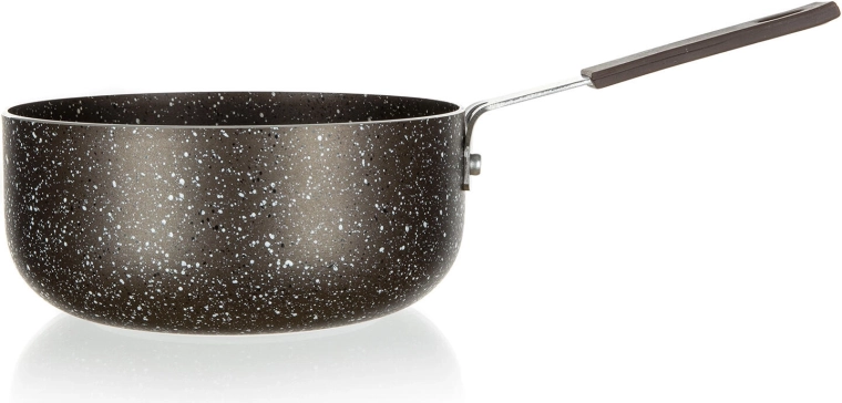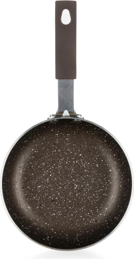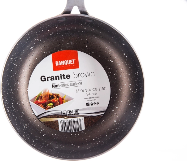 Kompaktní mini rendlík o průměru 14 cm s odolným 2vrstvým nepřilnavým povrchem v mramorovém designu Granite Brown je ideální na ohřívání, omáčky či porce pro jednoho. Hliníkové tělo zajišťuje rychlý rozvod tepla a snadné čištění. Není vhodný pro indukci.