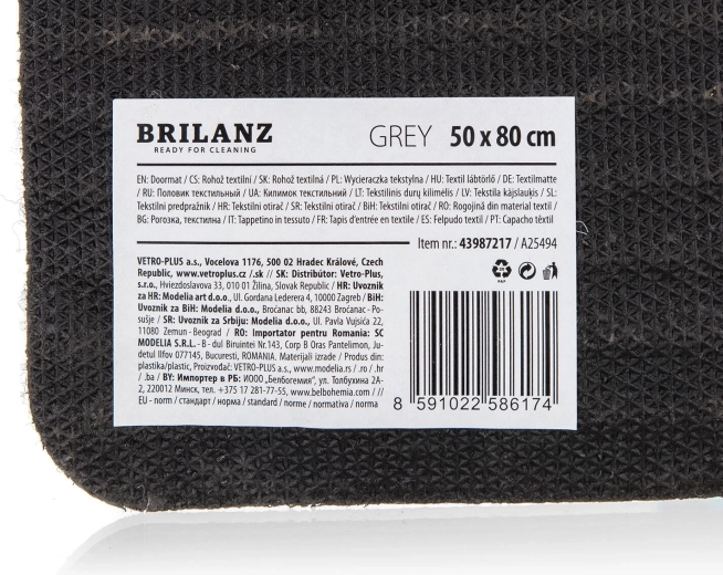 Textilní vrstva se strukturovanými žebry lépe zachytává prach, písek a vlhkost, zatímco gumová spodní strana brání posunu na hladkých podlahách. Rohož se snadno čistí oklepáním, vysátím nebo otřením vlhkým hadříkem, takže údržba je rychlá a nenáročná.
