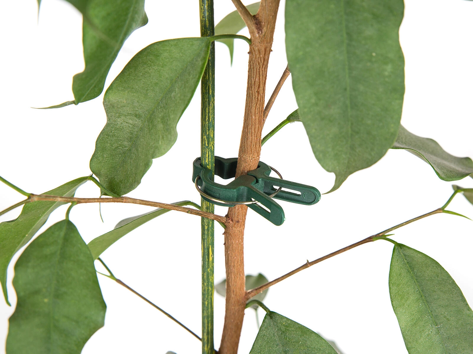 Pružinový klip bezpečně přidržuje stonky u opory bez poškození a lámání. Perfektní pro citlivé mladé rostliny i silnější výhony.