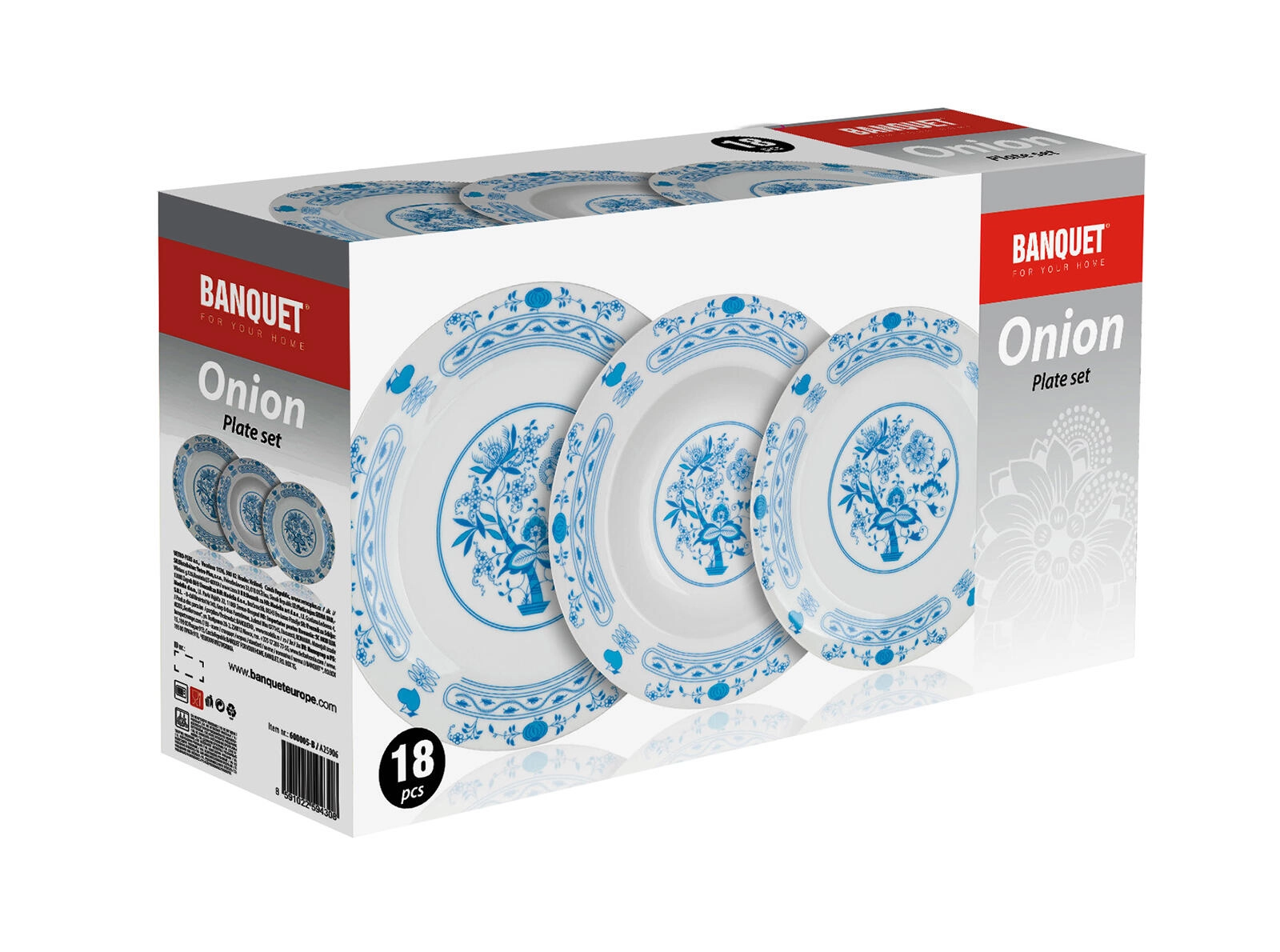 Obsahuje 6 dezertních (19 cm), 6 hlubokých (21,5 cm) a 6 mělkých talířů (24 cm) – vše, co potřebujete od předkrmu po hlavní chod.