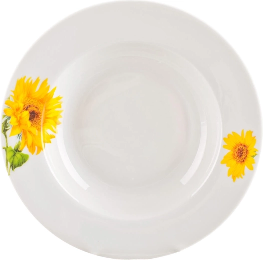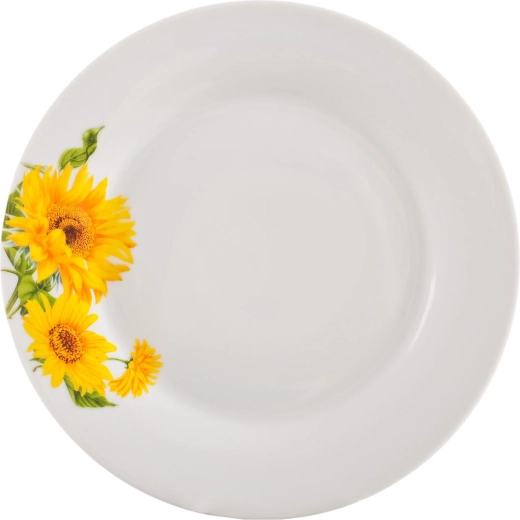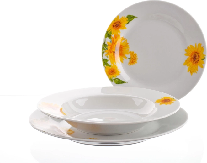 Porcelánová jídelní sada s motivem slunečnic SUNNY, 18 dílů, bílá
