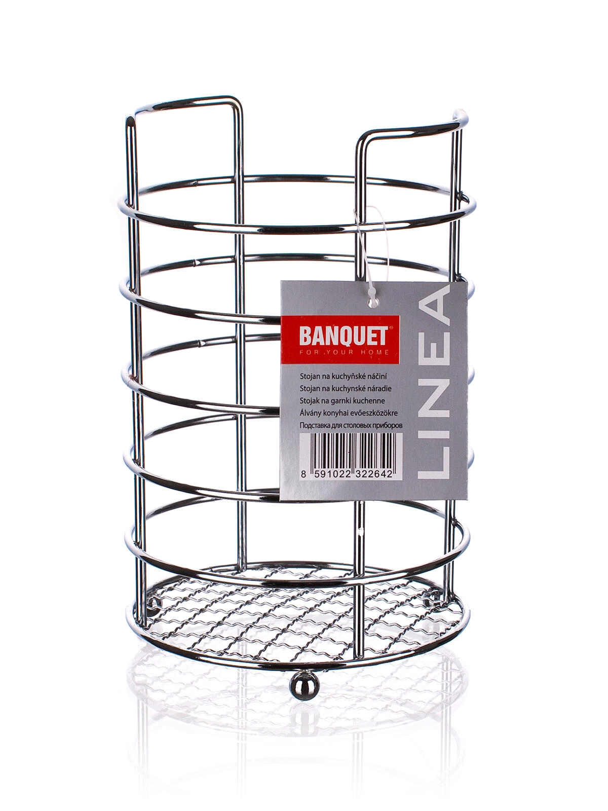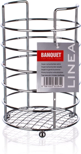 Praktický drátěný stojan na kuchyňské náčiní LINEA z pochromované oceli udrží vaše vařečky a naběračky přehledně na jednom místě. Kompaktní rozměry (průměr 11 cm, výška 17,5 cm) šetří prostor na lince a odolné provedení zajišťuje dlouhou životnost.
